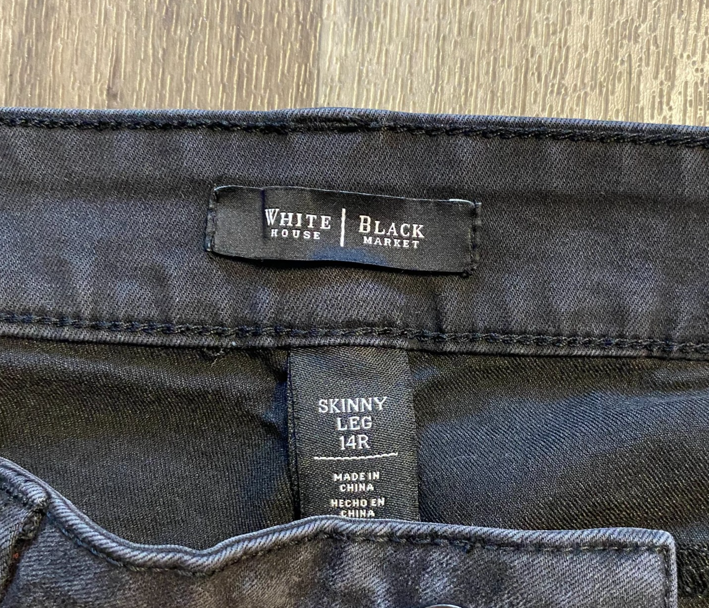 White House Black Market Women's Size 14R Black Skinny Leg Jeans Decent Condition, some staining on the front as shown in the last two photos, one large and one small stain Waist Across: 17 inches Rise: 10 inches Inseam: 30 inches