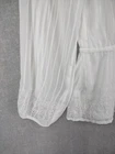White House Black Market Blouse Womens 8 White Sheer Boho Peasant Embroidered Top Condition: Gently worn, no visible flaws Shell: 100% polyester; Embroidery: 100% rayon; Lining: 100% polyester Features a semi-sheer striped chiffon outer with full lining for modesty Delicate white geometric embroidery on the front, sleeve cuffs, and hem Drawstring split neckline with tassel ties and silver tone metal tips Peplum hem with decorative elasticized waist for a flattering silhouette Long sleeves with embroidered details and gently gathered cuffs Tag size: 8 (Womens) Approximate flat measurements shown in photos: pit to pit about 19.25in, length about 25in Style code: 4501834358 / 570177507 / 20-4780 Color: White Made in China Machine wash cold with similar colors, gentle cycle; tumble dry low; may be dry cleaned