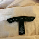 Gently Worn White House Black Market Pink 3/4 Bell Sleeve Off Shoulder Belted Blouse Size L Bust = 40", Hips = 40", Length = 26" 78% Cotton, 19% Nylon, 3% Spandex I do combine shipping & Payment is expected within 3 days please.