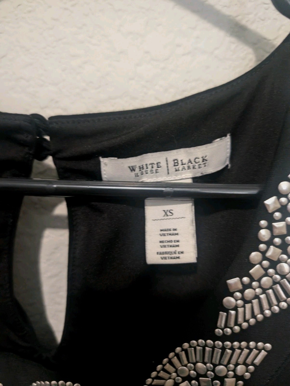 White House Black Market dress in size XS is a sleek and sexy option for various occasions, from casual to formal. The black sleeveless dress features a beaded pattern and a fitted elastic waistline, creating a flattering silhouette. Made from a blend of polyester and spandex, the dress offers stretch for added comfort and flexibility. With a scoop neckline. Wonderful condition Worn twice Sz xs Measurements are in photos Chest Waist Length Please review photos Boho beaded style Great for date night Travel cruise dinner wear Formal event Add blazer ..good for career wear Dress it up or casual with sandles you decide