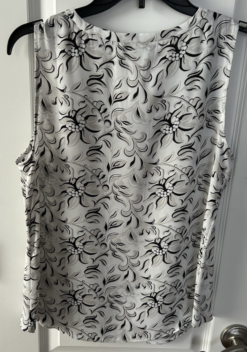 The White House Black Market size small black and white geometric sleeveless top blouse is a stylish and versatile piece perfect for casual occasions. Made from polyester, the blouse features a V-neckline, pullover.. With a regular fit and lined interior, this blouse is suitable for summer and spring seasons. The geometric pattern adds a touch of colorful flair to the basic style, making it a chic addition to any wardrobe. Designed by White House Black Market, this blouse is machine washable for easy care.