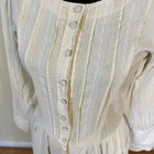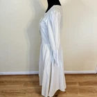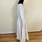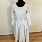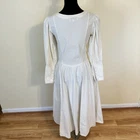 Embrace timeless style with this vintage-inspired dress featuring elegant pintuck details. Perfect for costuming, cosplay and acting. • Button-front design • Full skirt • Pintuck details • Long sleeves • Cotton material Waist- 16" Bust = 18 inches