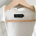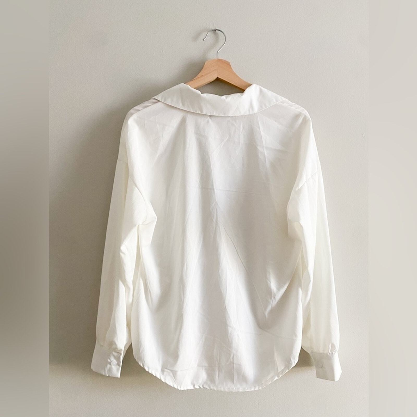 PrettyLittleThing Long sleeve blouse low cut top White Pre owned in nice condition! Smoke and pet free 100% Polyester ATTN: Please note the tag on back of shirt says 8 but that is UK sizing. Size is a US size 4. (See last two photos)