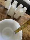 Add a vintage touch to your home decor with this white milk glass swirl bowl. The round bowl features a decorative pattern and is perfect for serving candy, trinkets, or spices. Measuring 6 inches in length, 2.5 inches in depth, and 2.75 inches in height, this bowl is a great addition to any tabletop. The glossy finish and original production style make it a unique and stylish piece. Ideal for all occasions, this unmarked bowl is a must-have for any adult department.