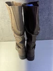 The White Mountain Leto Brown Slouch Riding Boot is a stylish and versatile footwear option for women in size 8.5 (US) or 6.5 (UK). With an almond toe shape and mid heel height of 2 inches, these boots feature a ruffle, studded accents, and a zipper closure for added flair. Made of leather with a fabric lining, they offer comfort and a fashionable look suitable for travel, casual outings, workwear, or business attire. The knee-high design and equestrian theme make them a great choice for all seasons.