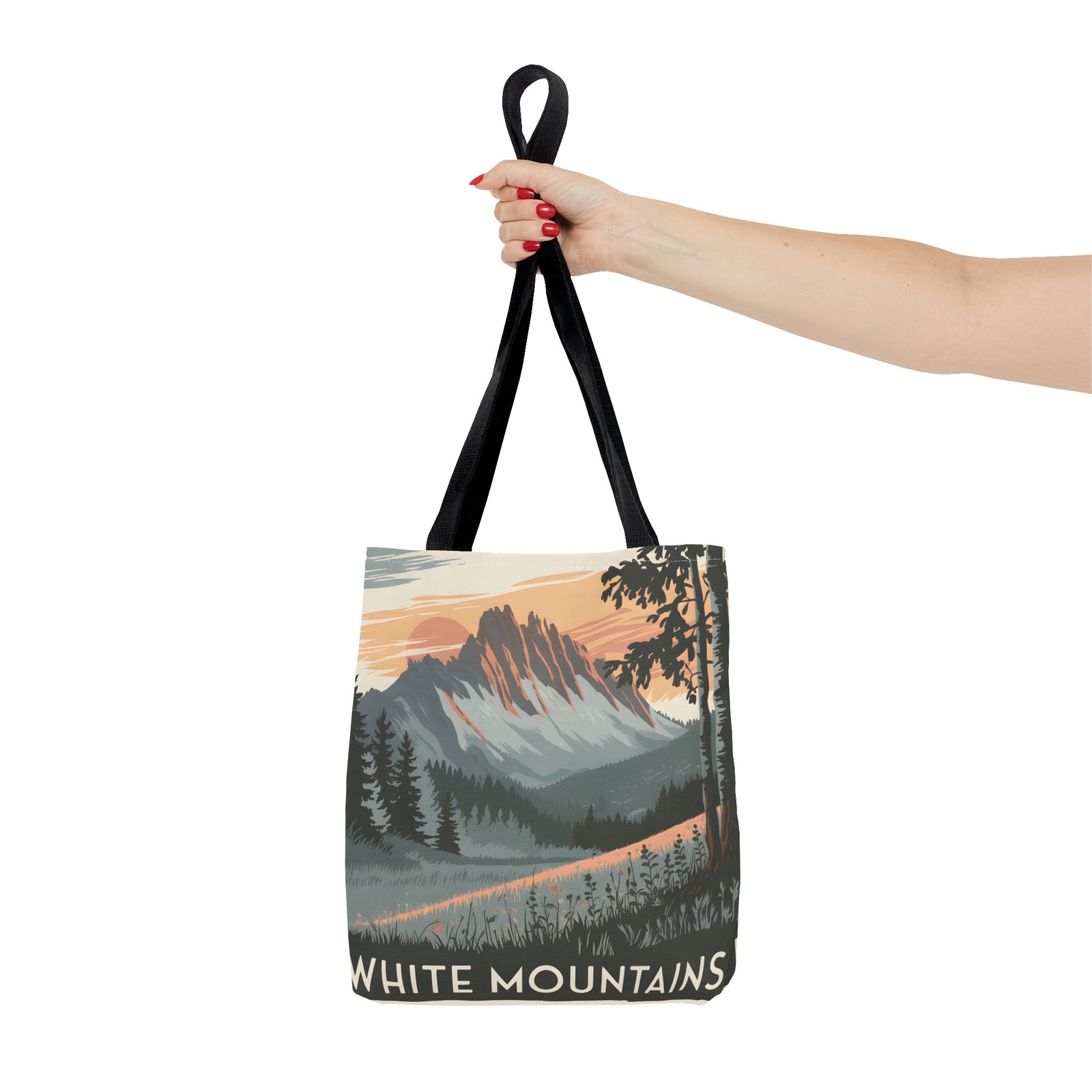 Discover the breathtaking beauty of the White Mountains with our All Over Print Tote Bag, perfect for nature lovers and avid travelers! This spacious tote features a stunning landscape design that captures the essence of outdoor adventure. Crafted from durable materials, it’s not only stylish but also practical for carrying your essentials. Ideal as a thoughtful gift for friends or a personal treat, embrace your wanderlust with this eye-catching accessory! #WhiteMountains #ToteBag #NatureLovers #TravelEssentials #OutdoorAdventure #GiftIdeas #LandscapeArt #EcoFriendly #StylishAccessories #Wanderlust Add functional perks to an already great design and you get a staple for everyday use. With its interior zippered pocket for added safety, and the adjustable straps for extra comfort, this tote bag has it all. 100% Spun Polyester Available in two sizes: 13''x13'' and 18x18'' Adjustable strap Black interior lining and inner pocket Assembled in the USA from globally sourced parts