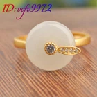 White Natural Jade Rings Real Jewelry Charm 18K Gold Plated Amulet