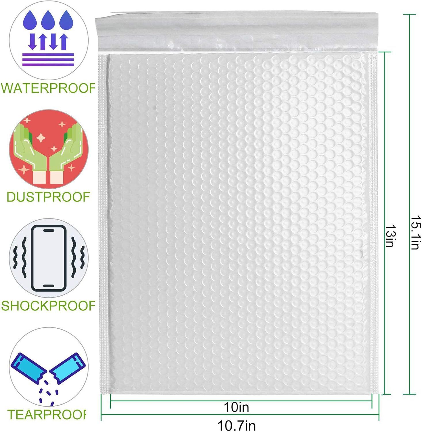 Poly Bubble Mailers Padded Self-Seal Closure Envelopes White, 10x13in
