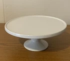 The product is a White Porcelain Cake Stand measuring 9" wide. Made of porcelain, this cake stand has a clean and elegant appearance, perfect for displaying and serving cakes or other baked goods. The white color adds a classic touch to any table setting, making it ideal for special occasions or everyday use. Its sturdy construction ensures stability while showcasing your desserts in a stylish way.