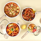 Store New Arrivals Add to Favorite View Feedback Contact White Pots and Pans Set Non Stick, Ceramic Cookware Set with Granite Pattern Kitchen Cooking Sets Induction Pot and Pan W/Frying Pans, Saucepans, Casserole, Non-Toxic, Ptfe/Pfoa/Pfos-Free Description Closure Material Glass Color White Material Ceramic Material Type Ceramic Volume 3E+1 Quarts Is Oven Safe Yes Handle Material Bakelite Size 6 pcs white Material Type Free PFAS Free, PFOA PTFE Free Is the item dishwasher safe? No Compatibility Options oven, electric stove, gas dishwasher, induction Included Components 9.5' frying pan, 11' 1.5-quart sauce pan with Lid, 5-quart stockpot Lid Enjoy a tasty and safe cooking experience with the Vkoocy Series Set! This 6-piece cookware set includes a 9.5" frying pan, 11" frying pan, 1.5-quart sauce pan with Lid, 5-quart stockpot with Lid. Made with non-toxic ceramic and free of harmful chemicals, this set contains all the tools you need to fry, sear, roast, and simmer your favorite dishes without worry. Plus, It's also specially decorated with patterns to make your kitchen blend with nature; Healthier & Safe Cooking: The set features a ceramic nonstick coating made without PFAS, PFOA, PFOS & PTFE that allows for effortless food release and an even easier clean up. High magnetic conductive stainless steel base allows our non stick kitchen cookware to work on all cooktops, like Electric, Halogen, Ceramic, Gas, Induction, Glass and Oven. The Extended and Thicken Bottom Design also makes the cookware durable and heats up quickly and evenly; Easy To Clean: Rivetless interior to prevent snags and food buildup. Just wipe it with a paper towel or rinse it with water, The pot body is also suitable for dishwashers (recommended without handle cleaning); Your dinner table serveware centerpiece. Modern, glossy, strong and an excellent heat retainer, our ceramic cookware is made to be involved in every part of the meal from prepping to laughing around the breakfast, lunch and dinner table; By our family for your health. At Vkoocy, our products are our integrity. That's our promise to you – we'll make decisions with your family and your health in mind as we would our own. If you encounter any problems, please feel free to and we will solve them perfectly for you. Product Description Enjoy a tasty and safe cooking experience with the Vkoocy Ceramic Cookware Set! Handcrafted with non-toxic pure ceramic and free of harmful chemicals, this set contains all the tools you need to fry, sear, roast, and simmer your favorite dishes without worry. Plus, it's sustainably made—perfect for cooking up a storm with peace of mind. Your kitchen's best buddy - Vkoocy Nonstick Ceramic Pots and Pans Set The video showcases the product in use. The video guides you through product setup. The video compares multiple products. The video shows the product being unpacked. While both ceramic and granite cookware are excellent choices, ceramic's balanced benefits of superior performance, health profile and longevity cement it as the ultimate non-stick kitchen solution. True non-stick cookware set, safe, healthy, and easy to clean. Don't hesitate anymore, take me home YOUR DINNER TABLE SERVEWARE CENTERPIECE Modern, glossy, strong and an excellent heat retainer, our ceramic cookware is made to be involved in every part of the meal from prepping to laughing around the breakfast, lunch and dinner table. Specification Color Black, White, Gray, Pink, (with Granite pattern) Material Die-Cast Aluminum, Ceramic Contains 9.5" & 11" frying pan, 1.5QT sauce pan with cover, 5QT stockpot with Lid(also fits 9.5" frying pan) Handle Material Bakelite Closure Material Glass Material Type Free PFOA FREE, PTFE FREE Granite cookware vs Ceramic cookware Granite coating is very slick, while ceramic's glass-like finish also prevents sticking. However, ceramic tends to retain and distribute heat more evenly than comparable granite pans due to ceramic's superior insulating properties. Is ceramic better than granite? Yes, Ceramic is better than Granite (Non Stick) , ceramic coatings are more expensive but safer and are the first choice of most health-conscious people. Is Vkoocy PTFE free? PPG Fusion Pro is Vkoocy's ceramic nonstick coating, and is PFAS- and plastic-free. You won't find PTFE, PFOA, lead or cadmium in our coating either. Is ceramic cookware non-toxic? Yes, ceramic pans are naturally nonstick and generally produced without PTFE, PFAS, and PFOAs. Quality ceramic pans will last a few years with proper care, and will only need to be replaced if the nonstick coating wears out. Will PTFE be banned in America? The European Commission (EC) is proposing that all PFAS be banned because it says they are persistent, can be toxic, and can bioaccumulate in organisms; Relevant bills have also been introduced in the US, and banning PTFE is the general trend Star products by Vkoocy Add to Cart Add to Cart Add to Cart Customer Reviews 4.5 out of 5 stars 1,743 4.5 out of 5 stars 243 4.7 out of 5 stars 92 4.5 out of 5 stars 1,743 4.5 out of 5 stars 243 4.5 out of 5 stars 316 4.8 out of 5 stars 18 Price $55.47 $ 55 . 47 $55.99 $ 55 . 99 $79.99 $ 79 . 99 $31.99 $ 31 . 99 $42.99 $ 42 . 99 $34.39 $ 34 . 39 $31.99 $ 31 . 99 Material: Ceramic Ceramic Ceramic Ceramic Ceramic Ceramic Ceramic Pattern: Granite Dot Solid / Granite Dot Granite Dot Granite Dot Solid / Granite Dot Granite Dot Solid / Granite Dot Include: 6pcs 9pcs 12pcs 3pcs 5pcs 3pcs 2pcs Lid Include: ✔ ✔ ✔ ✔ ✔ ✘ ✔ Color: Black, Pink, White Pink, Gray, Cream, Green Tan Beige Pink, Gray, Cream, Green Black, White Pink, Gray, Cream ABOUT US We offer the best prices around on high quality products. Our E-store includes media such as books, movies, music and games while offering electronics, toys, sporting apparel, clothing, tools, general home, garden items and more. SHIPPING We are always working hard to ensure your package arrives as soon as possible. Please understand that some factors like weat