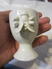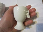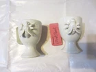 Here is a great pair of vintage footed egg cups that feature 3-D bee designs. They are hand made in white pottery. Each one is 3 inches tall and 2 1/8 inches across at the top. They each have a 3-dimensional bee perched on the side. They are not marked on the bottom. Upgrade your kitchenware offering with these uplifting Busy Bee egg cups. These egg holders would be a wonderful way to serve eggs to your guests at your next breakfast or brunch event. Excellent condition with no chips, cracks, repairs, or stains, were only stored and not used. Will quickly ship USPS. Love to combine shipping. Thanks. My shipping price includes my actual postage cost as well as packing/handling cost (bubble wrap, boxes, tape, envelopes, etc.) with transportation to post office and my time. It entails more than the postage stamp amount when it arrives to you. Also note that I recycle materials as much as possible - saving the environment. All that being said I do try hard to be reasonable. Please leave feedback when the item is received, and I will do the same for you.