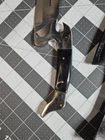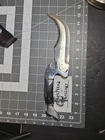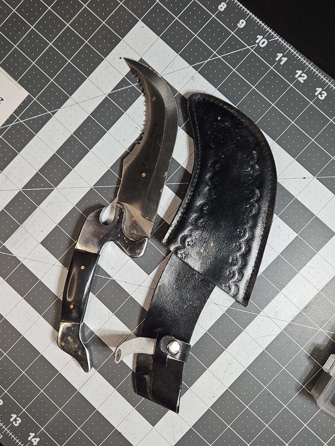 White Tail Cutlery Curved Hunting Knife Serrated Combination W Sheath Pakistan Patina and oxidation from age and use. Could use a deeper cleaning. Sold as seen. Product will be shipped timely and packaged with care. Offers are encouraged. Please feel free to reach out with questions. Please see pictures. Thank you. Good used condition. Light wear from age and use. Markings from age and use. See pictures This White Tail Cutlery hunting knife features a curved, serrated combination blade made of steel with a full tang for durability. The blade length is over 5 inches and the knife comes with a sheath for safe storage and transport. The handle material is unknown, but the knife is designed for ambidextrous use. The knife is an original piece and was manufactured in Pakistan. It is a modern, factory-manufactured fixed blade knife that would make a great addition to any collection. The blade color is white and the knife is perfect for hunting and other outdoor activities. MC7