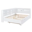 Elegant design: This daybed is designed with pine wood material, available in grey or white color. It is not only suitable for any home decoration, but also designed to last forever. Daybed Frame with Charging Station: This unique full size daybed frame is designed with a USB port charging station to allow you to charge or use electronic devices while you sleep, providing even more convenience and comfort. Space-saving:The daybed includes one trundle, which can be rolled out to provide extra sleeping space. This design is ideal for families with children or users who need to host guests frequently. There is a double-layer storage shelf next to the bed, where users can store bedding, toys and other items. Superior Quality: Made of high-quality MDF, the frame of this bed is not easy to be affected by humidity change and lead to crack. The strong legs, wide boards and 10 slats for bed,not only improve the weight capacity of the bed greatly but also ensure the stability. Product Dimension: Overall Product Dimension: 83.9"L X 63.3"W X 36.6"H. Bed suitable for full size mattresses. Wooden Full Size DayBed with Trundle, DayBed with Storage Shelf and USB Charging Ports, White This day bed is designed with pine wood material, available in grey or white color. It comes with a double-layer shelf for convenient storage and one pull-out bed for extra sleeping space. In addition, it is equipped with a USB charging station for electronic devices. This design is not only practical but also stylish, making it an ideal choice for any modern bedroom. The solid pine wood frame ensures durability and stability, while the sleek and minimalist design adds a touch of elegance to any room.