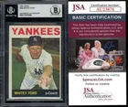 Whitey Ford Beckett BAS JSA COA Signed 1964 Topps Autograph PHOTO: DESCRIPTION: FULLY CERTED BECKETT SLABBED AUTHENTIC SIGNED SPORTSCARD FROM THE INTERNETS # SELLER OF AUTHENTIC SIGNATURES SHIPPING & PAYMENT: thanks for looking. All items are mailed within 24 hrs of payment , most within a few hours.We combine shipping so if you have more than one item request total when done.We combine shipping at about .50 extra a piece to point then free.Feel free to ask . International shipping rates have gone up this year, we will ship at the cost we pay.Most will be between 6-12.00 for like slabbed cards to a baseball. Feel free to email any questions about items or to talk collectibles, thanks always!!!! This listing created with GLETech Multiple Selling Channel tools.