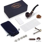 Pipe smokers expect their tobacco pipes to be as reliable as they are distinguished. Whitluck's designs their handmade wooden pipes with this exact philosophy. On the outside, the polished ebony wood catches the eye, while the large recessed bowl rests perfectly in the smoker's palm. Inside, the smooth, molded smoke chamber allows for an even smoke displacement and clean draw, and the tobacco can burn evenly. These gentleman's pipes make the PERFECT gift for a husband, dad, or grandfather. Whether it is his birthday, Christmas, or even Father's Day, he will love to relax using his Whitluck's Pipe in the backyard after a fun day spent with family and friends. Whitluck's aims to make cleaning and upkeep a breeze too, which is why we include all of the accessories you need for your pipe's upkeep! The handy 3-in-1 pipe tool allows you to clean out used ash quickly, and the pipe cleaners make clearing the smoke chamber a breeze. Whitluck's pipe kits also include standard filters as well as pipe screens, as every smoker has a different filter preference. All of the accessories are easily stored, along with the pipe itself, in the convenient and elegant carry bag. The Whitluck's Tobacco Pipe Kit includes: 1 x handmade tobacco pipe 1 x carry bag 1 x 3-in-1 pipe tool 1 x pipe stand 1 x beginners guide E-Book for smoking pipes 5 x pipe screens 10 x pipe filters (9mm) 10 x pipe cleaners Premium Quality Wood - Our handmade wooden pipe is artisanally crafted out of solid Ebony, while its design gives a modern colorful touch to one of the most traditional and reliable styles of pipe. Smoking Pipe Kit - The pipe kit is easy to use and clean, includes a high quality wood pipe and accessories (pipe stand, pouch, filters and screens) and a smoking pipe cleaning kit (3-in-1 tool and pipe cleaners) Perfect Gift Set - These gentlemen's pipes with a delicate case for avid tobacco pipes smokers and those just starting out - great for a Birthday, Father's Day or Christmas for a husband, dad, or grandfather.