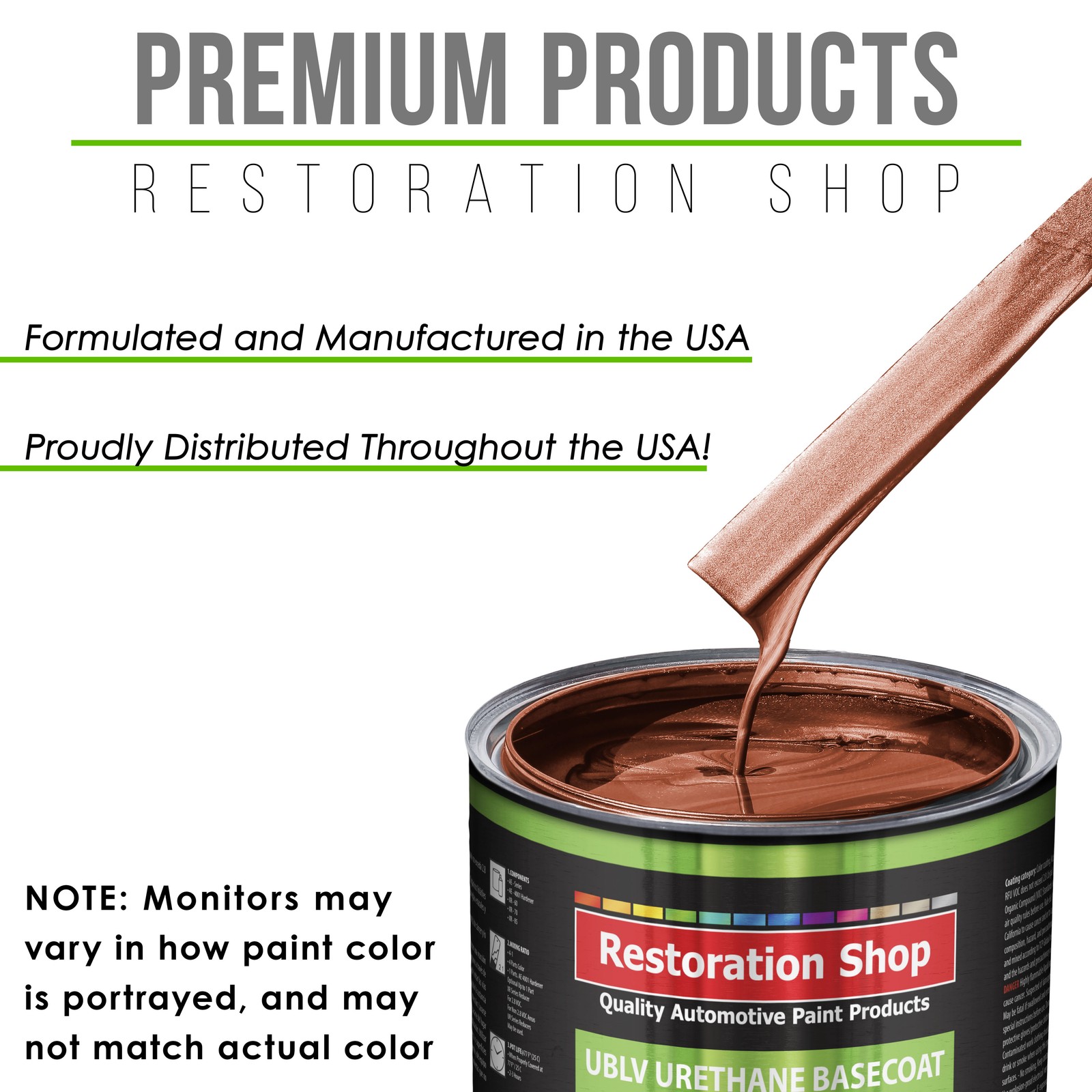 TCP Global Ebay Storefront Ordering | Shipping | Returns | International Product Information FLAMMABLE/HAZARDOUS ITEMS ARE SHIPPED VIA UPS GROUND/STANDARD TO THE LOWER 48 U.S. STATES & CANADA. ***SHIPPING VIA U.S. POSTAL SERVICE OR TO A P.O. BOX IS NOT AVAILABLE.*** RUSH AIR SHIPPING IS AVAILABLE IN CONTINENTAL U.S. FOR AN ADDITIONAL HAZMAT AIR SHIPPING CHARGE. CONTACT US PRIOR TO ORDERING FOR AIR SHIPPING QUOTE. IF ORDER IS PLACE FOR AIR SHIPPING YOU WILL BE CONTACTED FOR ADDITIONAL SHIPPING PAYMENT. INTERNATIONAL SHIPPING IS AVAILABLE. CONTACT US FOR SHIPPING QUOTE PRIOR TO ORDERING. Part# RSP UBLV2907-KIT-Q Whole Earth Brown Firemist - LOW VOC Urethane Basecoat with Clearcoat Auto Paint - Complete Medium Quart Paint Kit - Professional Automotive Coating Complete 1 Quart Restoration Shop - Low 3.5 VOC Urethane Basecoat with Clearcoat Auto Paint Kit with Medium Drying Reducer (Used when the ambient temperature range is 70-85Á F). The kit provides 1-1/2 Quarts of sprayable basecoat color material and 1-1/4 Quarts of Premium Clearcoat. UBLV Paint Kit includes 1 Quart of UBLV Low VOC Urethane Basecoat Paint Color, 1 Quart of XR70 Exempt Medium Urethane Reducer, 1 Quart of RC4221 High-Gloss Urethane Clear, 1 Half-Pint of RH4201 Urethane Hardener and a 3 Pack of 190 Micron Nylon Automotive Strainers. The Restoration Shop (UBLV) Low VOC Urethane Basecoat and Premium Clearcoat System is a State-of-the-Art High-Performance Professional Easy-To-Use Paint Coating System that is Designed to Reproduce the Hi-Tech O.E.M. Automotive Finishes Found on Today's Vehicles. UBLV is an easy to spray fast-drying basecoat/clearcoat system that provides a long-lasting and very high gloss topcoat finish result. UBLV is an extremely durable, chemical and solvent resistant coating that also resists chipping, cracking, and UV ray fading. Restoration Shop's (UBLV) is a Low 3.5 VOC compliant basecoat/clearcoat paint system that may be used in National Rule or Low 3.5 VOC limit States when using it with the proper XR series reducers. Note: Monitors vary - onscreen colors are for general color reference only. Restoration Shop (UBLV) LOW VOC URETHANE BASECOAT with CLEARCOAT - COMPLETE MEDIUM QUART PAINT KIT Includes: 1 - Quart of Restoration Shop Low 3.5 VOC Premium Urethane Basecoat Auto Paint Color 1 - Quart of Medium (70-85¡ F) Exempt Urethane Reducer (RSP XR70-QT) 1 - Quart of High-Gloss Urethane Clear (RSP RC4221-QT) 1 - Half-Pint of Urethane Hardener (RSP RH4201-HP) 3 - Each Premium 190 Micron Nylon Automotive Strainers UBLV Paint Color has a 2 to 1 Mixing Ratio, 2 parts UBLV Paint Color to 1 part XR Urethane Reducer. UBVL Basecoat color requires a 2 to 1 mix ratio with the included medium drying (70-85¡ F) XR exempt urethane reducer before spraying. Restoration Shop High-Gloss Urethane Clear (RSP RC4221) has a 4 to 1 Mix Ratio, 4 parts Urethane Clearcoat to 1 part Urethane Hardener A 2.1 VOC conventional solid polyurethane clearcoat. A two-component (2K) polyurethane clearcoat formulated to offer ease of application, great flow and leveling, excellent durability and high-gloss. This high quality clearcoat is the prefered high production topcoat that professional's use in today's high-end auto body shops. This clearcoat is used for overall application, and is also used for spots and panels. The clearcoat is VOC compliant for all multi-stage topcoat systems, and can also be applied on top of other basecoat brands. Optional Reducers Available Separately XR Series Exempt Reducers to Maintain a 3.5 VOC Level: XR60 Exempt Fast Reducer 60-70¡ F; XR70 Exempt Medium Reducer 70-85¡ F; XR85 Exempt Slow Reducer 85¡ F and above Since 1974, Restoration Shop has been a Trusted Top Quality Brand and The Source for Innovative Premium Quality Automotive Products! Restoration Shop Low VOC UB Urethane Basecoat is a state-of-the-art basecoat designed to reproduce the hi-tech O.E.M. finishes found on today's vehicles. It features outstanding coverage, rapid dry time, excellent metallic control and optimum repairability. UBLV provides an environmentally friendly solvent solution. View all categories Warehouse Locations San Diego, California South Carolina