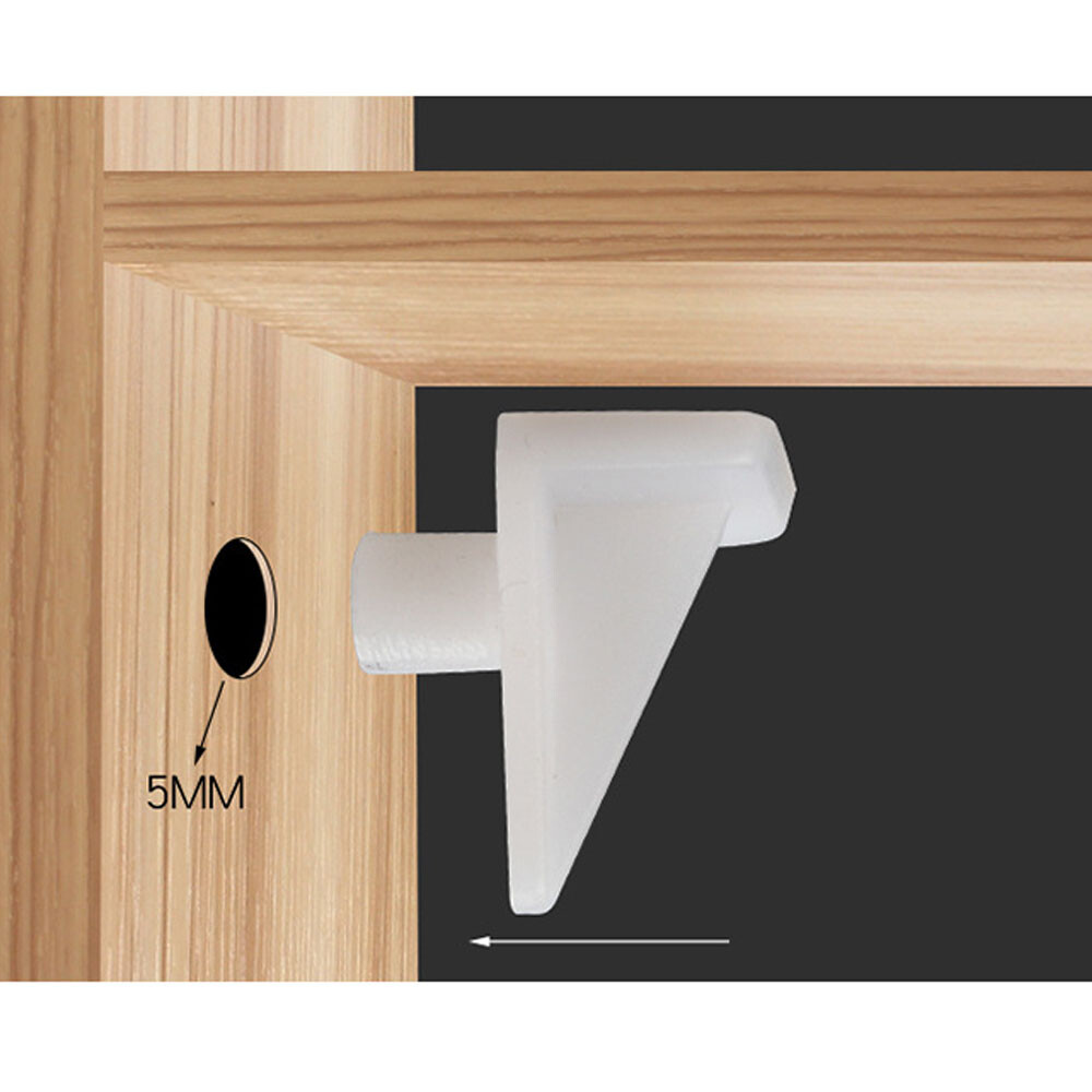 Description: 1.5mm Shelf Pins are used to support a shelf in place on any project with 5mm shelf holes, the load of the product is Max 5Kg. 2.Support pegs use advanced process, the plastic support are integrally formed, which is durable, not easy to loose and wear and has a long service life. 3.These shelf support pegs are designed in small type, which made them hardly noticeable and prevent shelf wobble, it make the board sturdy enough to keep level and stable. 4.This laminate Shelf support Pegs, with a stylish color design, is easier to fit into your style, while adding a chamfer design to the front end of the metal studs for a smoother and easier installation. 5.Shelf Pegs widely used on Furniture,Shelves Supplies,wine cabinet,display cabinet,book shelf,closet,shoe cabinet ,Kitchen,solid wood plywood plastic ,glass plate,and so on. Specification: Material: Plastic. Color: White Pin Diameter : 5mm /0.2" Mounting Pin Size: 5mm x 5mm / 0.2" x 0.2"(D x L) Dimension: 14mm x 12mm x 16mm /0.55" x 0.47" x 0.63" (L x W x H) Package Content: 100/200/400pcs x Shelf Peg On May 28, 2024 at 02:22:43 PDT, seller added the following information: