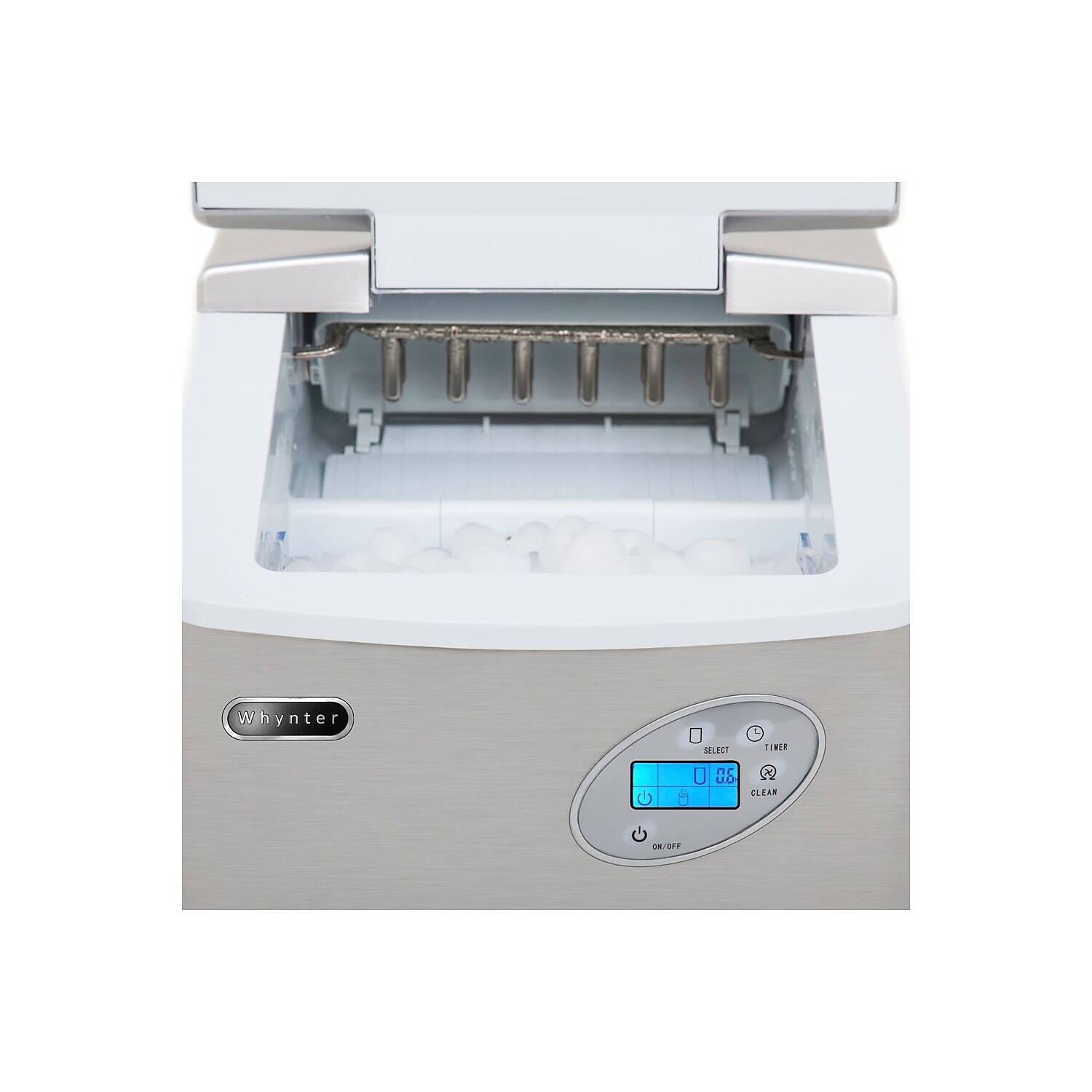 The Whynter IMC-490SS Portable Ice Maker is a premium stainless steel countertop ice maker use in your kitchen, home bar or office. In addition to quickly and efficiently making perfectly bullet-shaped ice cubes, the Whynter IMC-490SS Portable Ice Maker can produce up to 49 pounds of ice per day. You are also able to control and monitor the ice production on the LED display and soft-touch panel. This portable ice maker does not need direct plumbing. Simply fill the 5 liter reservoir with water, choose your ice size and watch the Whynter IMC-490SS Portable Ice Maker make your first batch in as little as 10 - 15 minutes. • 784 Ounces. • Electric. • 17x17.25x15... eBay STORE ABOUT US SAVE SELLER CONTACT US Whynter Portable Ice Maker 49 lb capacity - Stainless Steel (IMC-490SS) - Sold as 1 Each The Whynter IMC-490SS Portable Ice Maker is a premium stainless steel countertop ice maker use in your kitchen, home bar or office. In addition to quickly and efficiently making perfectly bullet-shaped ice cubes, the Whynter IMC-490SS Portable Ice Maker can produce up to 49 pounds of ice per day. You are also able to control and monitor the ice production on the LED display and soft-touch panel. This portable ice maker does not need direct plumbing. Simply fill the 5 liter reservoir with water, choose your ice size and watch the Whynter IMC-490SS Portable Ice Maker make your first batch in as little as 10 - 15 minutes. • 784 Ounces. • Electric. • 17x17.25x15. • 5 Liter manual water reservoir. • Stainless Steel cabinet. • Stores up to 2.7 lbs of ice. • No drain required - water from melted ice cubes is filtered and re-used. • 3 ice sizes to choose from (small, medium, or large). • Sold as 1 Each. You may be interested in our other listings on eBay.