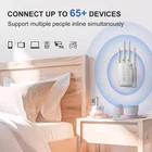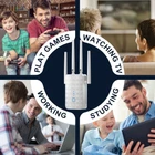 【1200Mbps Dual Band Gives 360° Full Coverage Signal】:This WiFi extender signal booster with all-new dual band technology can provide up to 300Mbps for 2.4GHz, up to 867Mbps for 5Ghz, totally rate of about 1200Mbps. This WiFi extender can expand the existing wireless network to hard to reach areas,covering up to 360 degrees, up to 10000 square feet and 55+ devices and farthest reduces the loss of data transmission, creating a stable network for you to enjoy fast speeds internet mode. 【Plug and Play -One-Tap Setup】: This WiFi repeater can extend WiFi signal easily by pressing the WPS button. You can also choose to use your mobile phone or PC to setup, connect to WiFi, enter the password to complete the setting. Or set up via browser website(192.168.11.1) on almost any devices, including Windows/Android/iOS mobile platforms. No challenging installation process. And an user manual also can help you to set it up quickly. So excellent WiFi extenders signal booster for home ! 【3 Modes : Repeater / AP Mode / Router Mode with 2*Ethernet ports】The WiFi extender can instantly switch 3 modes - Repeater/AP/ Router Mode to meet your different needs. The 2*Ethernet ports can make wired network to be expanded into a wireless network and connect to any wired Ethernet devices such as smart TV. NOTE:Set up the extender NEAR the router, or the installation may fail due to weak signal caused by long distance. After finishing the setup, you can re-plug extender to other places. 【Universal Compatibility up to 55+Devices-with 4 antennas】The WiFi extender signal booster easily connect to all brands of router, keep a strong connection for your devices like Roku, Fire Stick, xbox/PS, doorbell cameras, garage doors, smart plug etc. The 4 Powerful high-gain external antennas also greatly enhance signal, gives you a fluently internet enjoy. NOTE: Keep the antenna as vertical as possible to the ground for great signal. 【WiFi Extender Signal Booster Placement&Secure Network Access Protocol】:This all-new WiFi booster extender uses the Bionic Encryption Module processor to provide the latest WEP / WPA / WPA2 security protocols for additional security and privacy features, which can ensure your network safety, perfectly solve privacy problems of WiFi. Our team offers 180 days return or replacement quality warranty & 7*24H lifetime technical supports. Pick us and you will have a wonderful shopping experience!