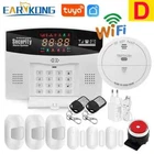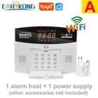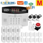 Tuya WiFi GSM Alarm System ATTENTION: This is New upgrade product, so please not feel strange that there is old version product in the feedback. We can offer EU / AU / US / UK power plug, please leave message if you need change the power adapter. Multiple Languages to switch 1. Voice Prompt language: Chinese / English / Russian / Spanish. 2. APP (SMS) language: Chinese / English / Russian / Spanish / German / French / Italian / Polish. 3. Manual book language: Chinese / English / Russian. WIFI connection After connect to wifi router through mobile APP settings, you can remote control the product anywhere and anytime. Doorbell Function No need to install extra doorbell button on the wall. there is a doorbell button on the APP, you can press the doorbell anytime and anywhere. Accurate Alerts The alarm panel has a built-in siren, no need to add an additional siren Voice Control Support Alexa / Google Home voice control. SOS emergency button One-key SOS helping alarm Scheduled arm/disarm You can preset the time of scheduled arming and scheduled disarming. For example: you can set the system automatically arm the defense after you got to work. And automatically disarm after back home. So no need to manually control the host frequently. Shared account Support 5 groups alarm phone number Wired zone Support 4 wired ports Wireless zone Support 99 wireless ports for wireless detectors. Long standby time In the power saving mode, the battery can work for about 8 hours. It far exceeds the 3-hour standby time of other devices in the market. Note: Due to aviation restrictions, all the detectors have no battery include. You can buy battery in your city, it is easy to buy. door sensor battery: 3V CR2032(not include) inrared sensor battery: 3V CR2450(not include) smoke sensor battery: 1.5V AAA(not include) water sensor battery: 3V CR123A(not include) Product Include Option“A”:1 Alarm Host + 1 Power adapter (No other accessories). Option“B”:1 Alarm Host + 1 Power adapter + 1 Wired Siren + 2 Remote Control + 1 Door Sensor + 1 Motion Detector. Option“C”:1 Alarm Host + 1 Power adapter + 1 Wired Siren + 2 Remote Control + 10 Door Sensor + 3 Motion Detector. Option“D”:1 Alarm Host + 1 Power adapter + 1 Wired Siren + 2 Remote Control + 3 Door Sensor + 3 Motion Detector + 1 Smoke Detector. Option“E”:1 Alarm Host + 1 Power adapter + 1 Wired Siren + 2 Remote Control + 6 Door Sensor + 2 Motion Detector. Option“F”:1 Alarm Host + 1 Power adapter + 1 Wired Siren + 2 Remote Control + 4 Door Sensor + 2 Motion Detector + 1 Water Sensor. Option“G”:1 Alarm Host + 1 Power adapter + 1 Wired Siren + 2 Remote Control + 4 Door Sensor + 4 Motion Detector. Option“H”:1 Alarm Host + 1 Power adapter + 1 Wired Siren + 2 Remote Control + 5 Door Sensor + 5 Motion Detector + 1 Wifi Camera + 1 USB Power adapter. Option "I" :1 Alarm Host + 1 Power adapter + 1 Wired Siren + 2 Remote Control + 6 Door Sensor + 6 Motion Detector. Option“J”:1 Alarm Host + 1 Power adapter + 1 Wired Siren + 2 Remote Control + 8 Door Sensor + 3 Motion Detector + 1 Wireless Keyboard + 4 RFID card. Option“K”:1 Alarm Host + 1 Power adapter + 1 Wired Siren + 2 Remote Control + 12 Door Sensor + 4 Motion Detector. Option“L”:1 Alarm Host + 1 Power adapter + 1 Wired Siren + 2 Remote Control + 15 Door Sensor + 6 Motion Detector. Option“M”:1 Alarm Host + 1 Power adapter + 1 Wired Siren + 3 Remote Control + 10 Door Sensor + 8 Motion Detector. Option“N”:1 Alarm Host + 1 Power adapter + 1 Wired Siren + 4 Remote Control + 16 Door Sensor + 10 Motion Detector. FAQ: Q: What voltage does the alarm host works? A: It connect 12V 1A power adapter. Q: Does alarm system support 5G wifi? A: No, only support 2.4G wifi. Q: Why alarm system can not read my SIM card? A: Please charge your battery at first, and then start your system. Q: Can we control system by phone app? A: After system connect to wifi router, you can control it by phone app. Q: Does the alarm system can be control by dailing or SMS? A: No. When system alarm, you can receive alarm SMS and phone calling, but dailing or SMS can not control system. Only support APP remote control after connect to wifi.