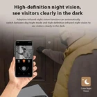 Product Features 1. Support remote video calling 2. Support voice change, women's voices into men's voices 3. Convenient installation, can be glued, can be perforated 4. Support up to 8 family members at the same time Package include *Doorbell unit ×1 pc *Indoor ding-dong unit ×1 pc *Auxiliary installation sticker ×1 pc *English Manual instruction ×1 pc Details 1. Scan the QR code of the instruction manual with your mobile phone to download the app; 2. Open the mobile app, connect the mobile phone to the hot spot of the doorbell, and then connect the doorbell to the 2.4GHz router WiFi in your home. The setup was successful; 3. Install and fix doorbell and receiver; 4. When the doorbell rings, check directly on your phone 5. Only support mobile APP, can not be used on computer, tablet, laptop.