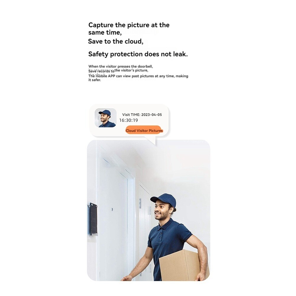 Video Doorbell Kit WiFi Video Doorbell Camera Night Vision Two-Way Audio6671 1. Support remote video calls 2. Support voice change, female voice to male voice 3. Easy to install, can be pasted, can be punched 4. Support up to 8 family members to use at the same time Details 1. Scan the QR code in the instruction manual with your mobile phone to download the APP; 2. Open the mobile APP, connect the mobile phone to the doorbell hotspot, and then connect the doorbell to the 2.4GHz router WiFi , and the setting is successful; 3. Install and fix the doorbell and receiver; 4. When the doorbell rings, check it directly on the mobile phone 5. Only supports mobile APP, cannot be used on computers, tablets, and laptops. Colour:White Material:Plastic Package Contents: 1x Doorbell unit 1x Indoor ding- unit