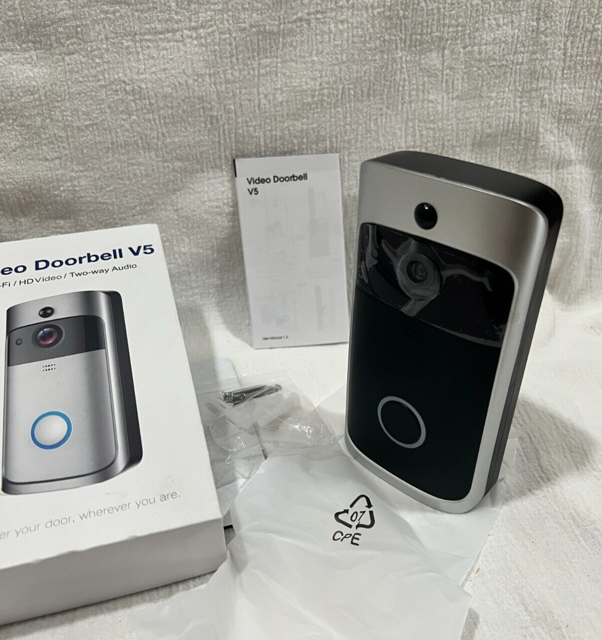 up for sale is Video Doorbell V5 - Wi-Fi Motion HD Video Ring Button Doorbell Two-way Audio The Video Doorbell V5 by Lifemement is a modern and sleekly designed device suitable for homes. It features night vision, video recording, two-way audio, and is water resistant. With a Wi-Fi connectivity and battery power source, this rectangle-shaped doorbell includes a Wi-Fi motion HD video camera and a ring button for easy access. The multicolor plastic construction ensures durability and privacy for your home. Built-in microphone, frosted finish, and wireless connectivity make it a convenient and secure addition to your smart home. Brand new , open box in very good condition!!! smoke free home Satisfaction Guaranteed!!!