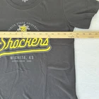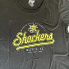 Blue 84 brand Sportswear Wichita State University Shockers Women's Size Medium T-Shirt, Short Sleeve Solid black tee with yellow and white printed graphics Front hit includes Wichita State University, Team Logo and Wichita, KS Est. 1895 Clean back hit NCAA officially licensed gear See photos for details, appearance and measurements Brand New Without Tags Buy It Now and Save $$ Inv#0511