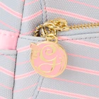 With a look this good, you’re bound to be the most popular person in town. Inspired by Glinda’s bewitching fashion sense, this mini backpack elevates your ensemble with all the glitz and glamor worthy of a star. Add this accessory to any outfit to create a style that’s perfectly thrillifying! Features: Vegan leather (polyurethane) Adjustable shoulder straps Front zipper pocket Side drop pockets Shiny gold hardware Enamel zipper charm Applique, canvas, metallic, molded metal, button, and printed details Coordinating inside lining Dimensions: 9”W x 10.5”H x 4.5”D 22.9 cm W x 26.7 cm H x 11.4 cm D