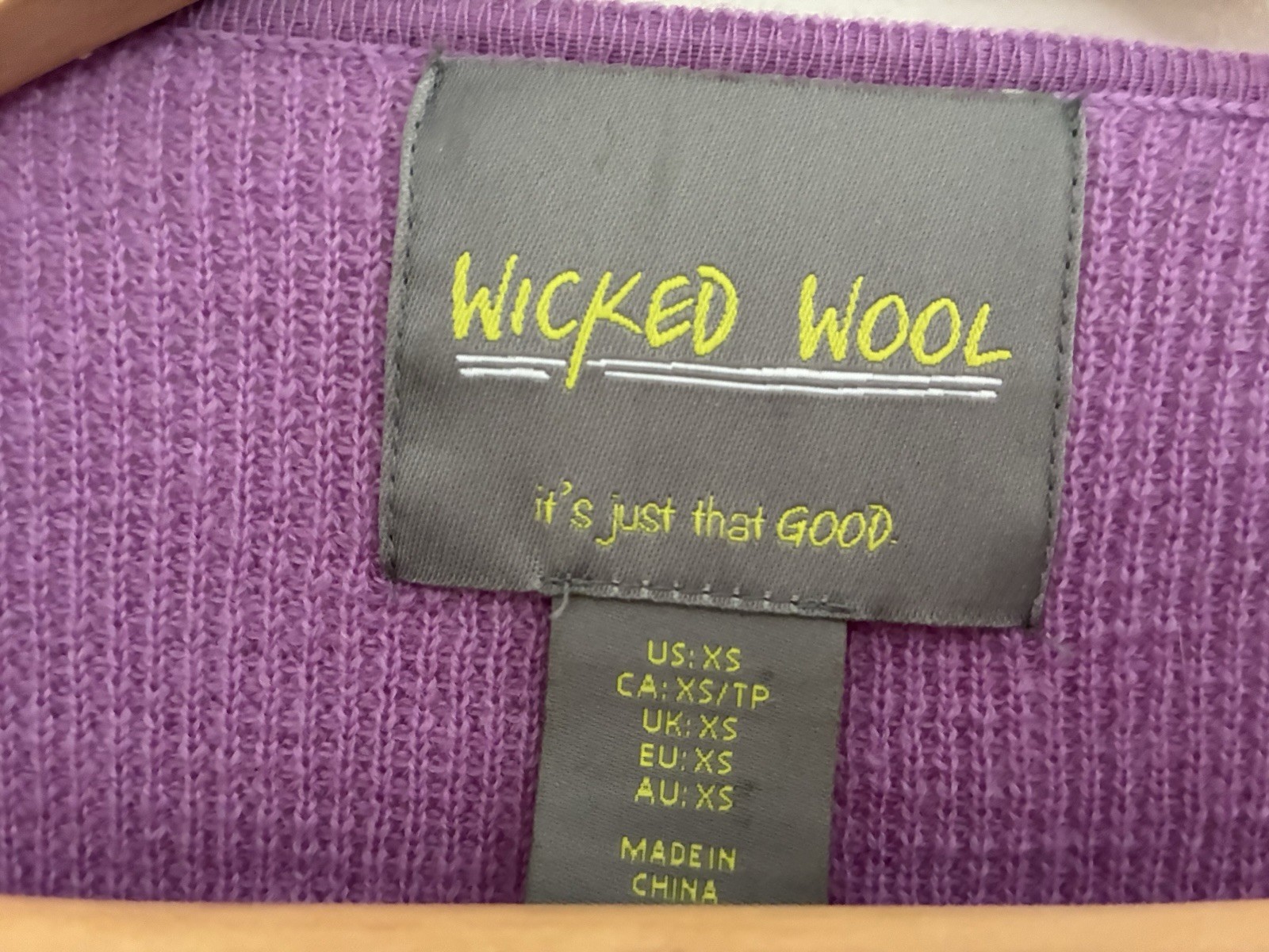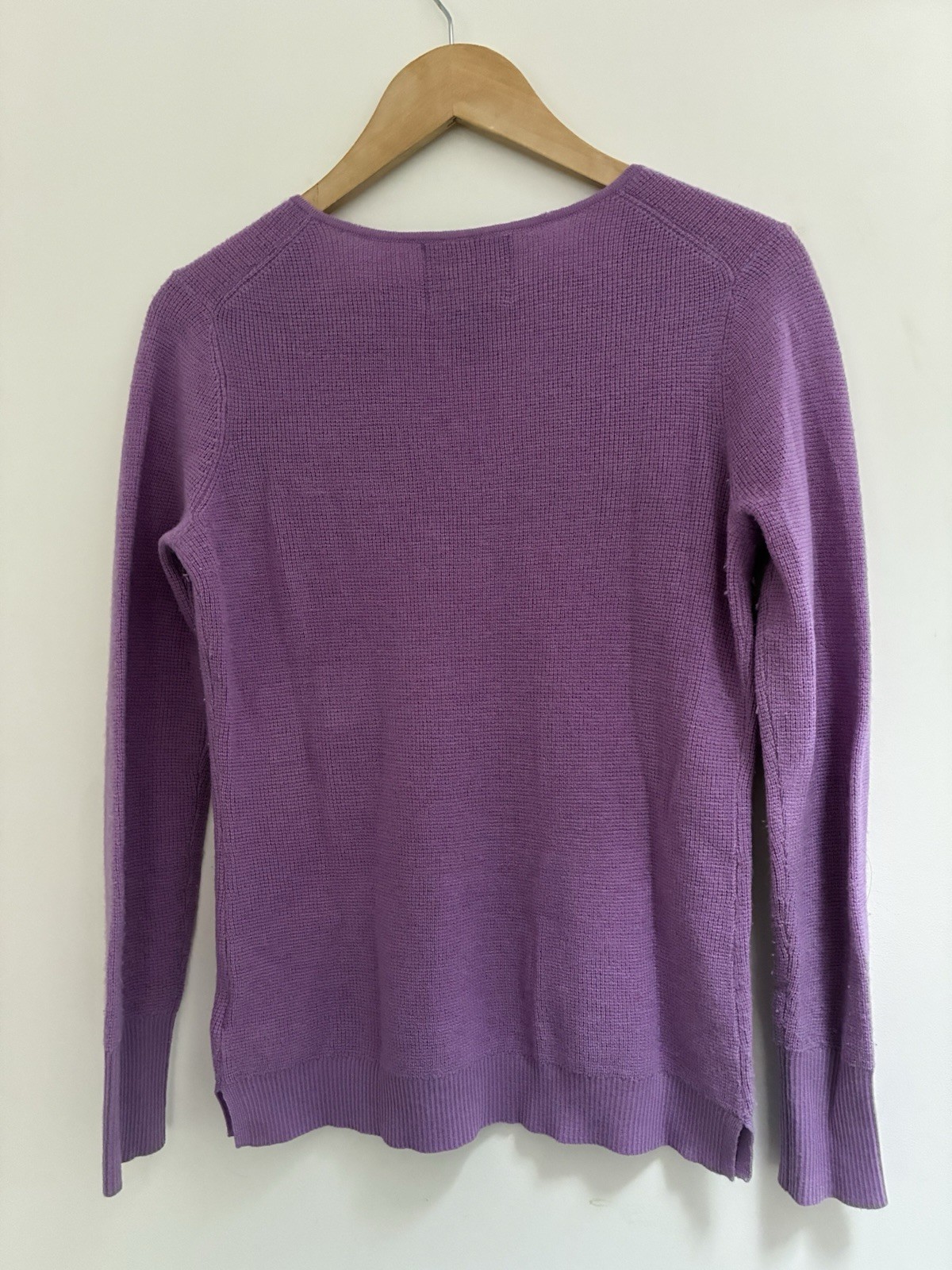 Wicked Wool Women's Solid Purple 100% Extrafine Merino Wool Rib-Knit Sweater XS. Condition is pre-owned. Smoke free, pet free home. Shipped via USPS Ground Advantage. In good condition. There is pilling of the fabric. Free of rips or stains.