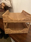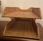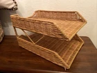 In excellent condition Wicker Rattan 2-Tier Desk File Tray Mail/Letter Office Organizer Boho Style EUC