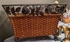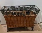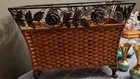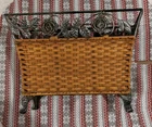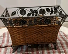 Wicker: Rattan/Metal Magazine Holder. Rose Design Along Border. Preowned