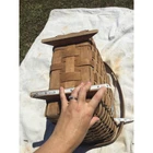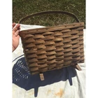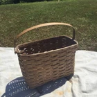 Wicker basket bathroom organizer magazine holder blanket Has a rotating handle - adjustable Has feet Excellent preloved condition. Tags: rustic, farmhouse, country