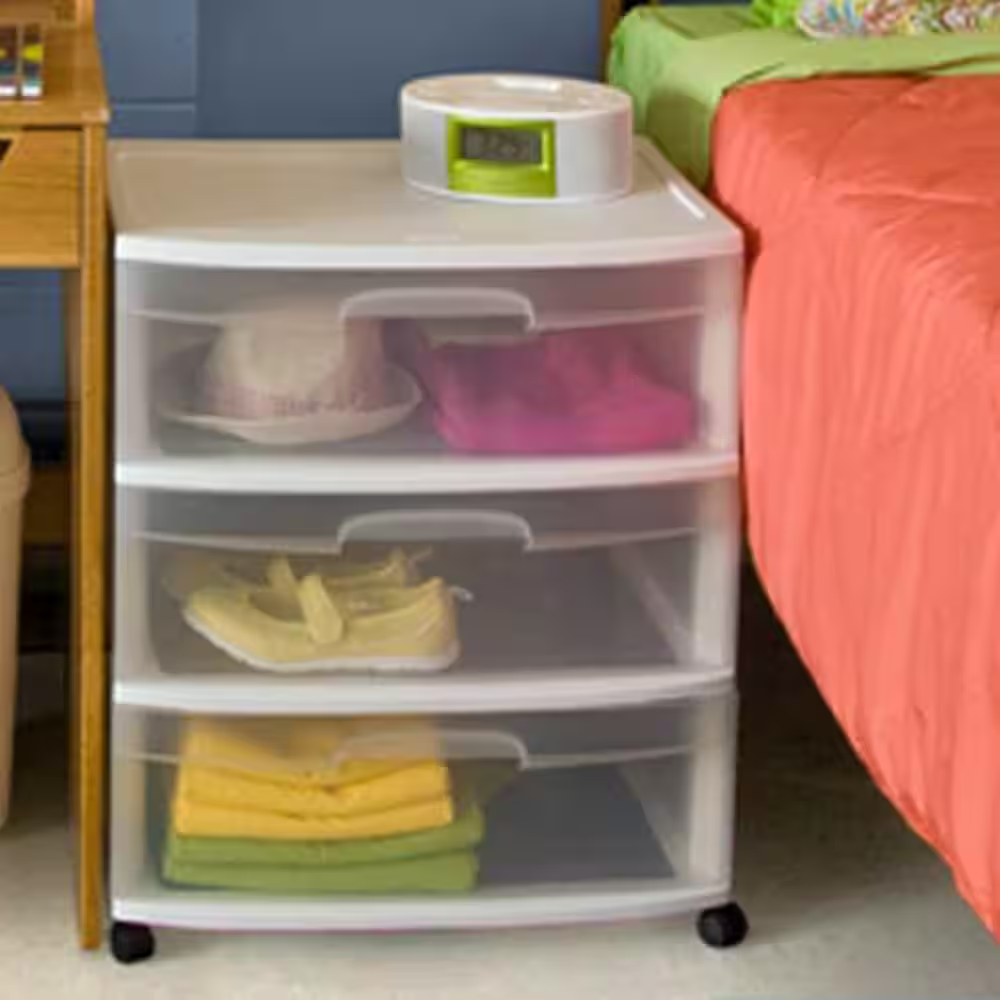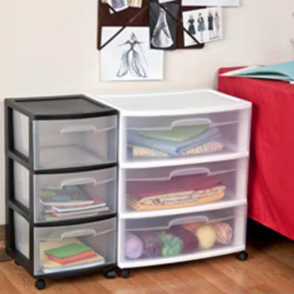 Fast Shipping On All Items 30 Days Money Guarantee Customer Support Excellent Service 100% Satisfaction Satisfaction Guaranteed Wide 3-Drawer Plastic Rolling Storage Cart Container with Casters, (2-Pack) Specification Assembly Required No Color Family Multi-Colored Color/Finish Clear and White Features Handles,Pull-Out,Rolling,Wheel Locks,With Drawers Indoor/Outdoor Indoor Material Plastic Number of Shelves 3 Product Weight (lb) 22 lb Returnable 90-Day Total Weight Capacity (lb) 0 Manufacturer Warranty No warranty Assembled Depth (in) 15.25 in Assembled Height (in) 25.62 in Assembled Width (in) 21.87 in Shelf Weight Capacity (lb) 0 lb 21.87 inches x 15.25 inches x 25.62 inches. Weight: 22.0 lb Item Description Clear drawers allow contents to be easily identified Integrated handles enable effortless drawer operation Casters provide mobility for convenient room-to-room use Keep your home organized with a 2-pack of the sterilite wide 3-drawer rolling storage carts. The supreme storage carts for any room in your home, office, or classroom. Wide drawers can accommodate items from scrapbooking materials, school supplies, clothing, books, and so much more. Organization will be a walk in the park with these rolling carts. The transparent drawers allow you to see your items and keep your belongings neatly contained while the white frames complement any space you place the cart and add a sleek storage option to your space. Ergonomic, easy-pull handles are easy to use and convenient drawer stops prevent the drawers from being fully pulled out to prevent any slips and spills. Rolling casters allow you to move your storage to any room you need and provide a portable organization solution. Ideal for art supplies, kitchen snacks, bathroom toiletries, and more you can organize any room with the Sterlite storage drawers. Outfit your space with the wide 3-drawer rolling storage carts from sterilite and watch the organization's magic happen. About us We offer the best prices around on high quality products. Our E-store includes media such as books, movies, music and games while offering electronics, toys, sporting apparel, clothing, tools, general home, garden items and more. Shipping We are always working hard to ensure your package arrives as soon as possible. Please understand that some factors like weather, high postal traffic, and the performance of shipping companies are outside of our control. We offer free shipping to the lower 48 states and ship within 2-3 business days of payment, usually sooner. We do not accept P.O. Boxes. Please provide a physical address. For shipping outside of the continental USA, we only use eBay's Global Shipping Program.The item is shipped to KY and then sent to the rest of the world. International customers are responsible for all duties and taxes. Continue to check out to calculate costs for shipping the item to your country. Messages regarding eBay's Global Shipping Program MUST be directed at eBay EXCLUSIVELY. Returns We offer a 30-Day Return Policy on items in which you are not completely satisfied with. You have the option of a full-refund or an exchange of the item. No returns are available on items shipped outside of the USA Satisfaction We try over very best to make sure every customer is completely satisfied. If there's a problem, message us! We're happy to help. Payment Options Shop With Confidence