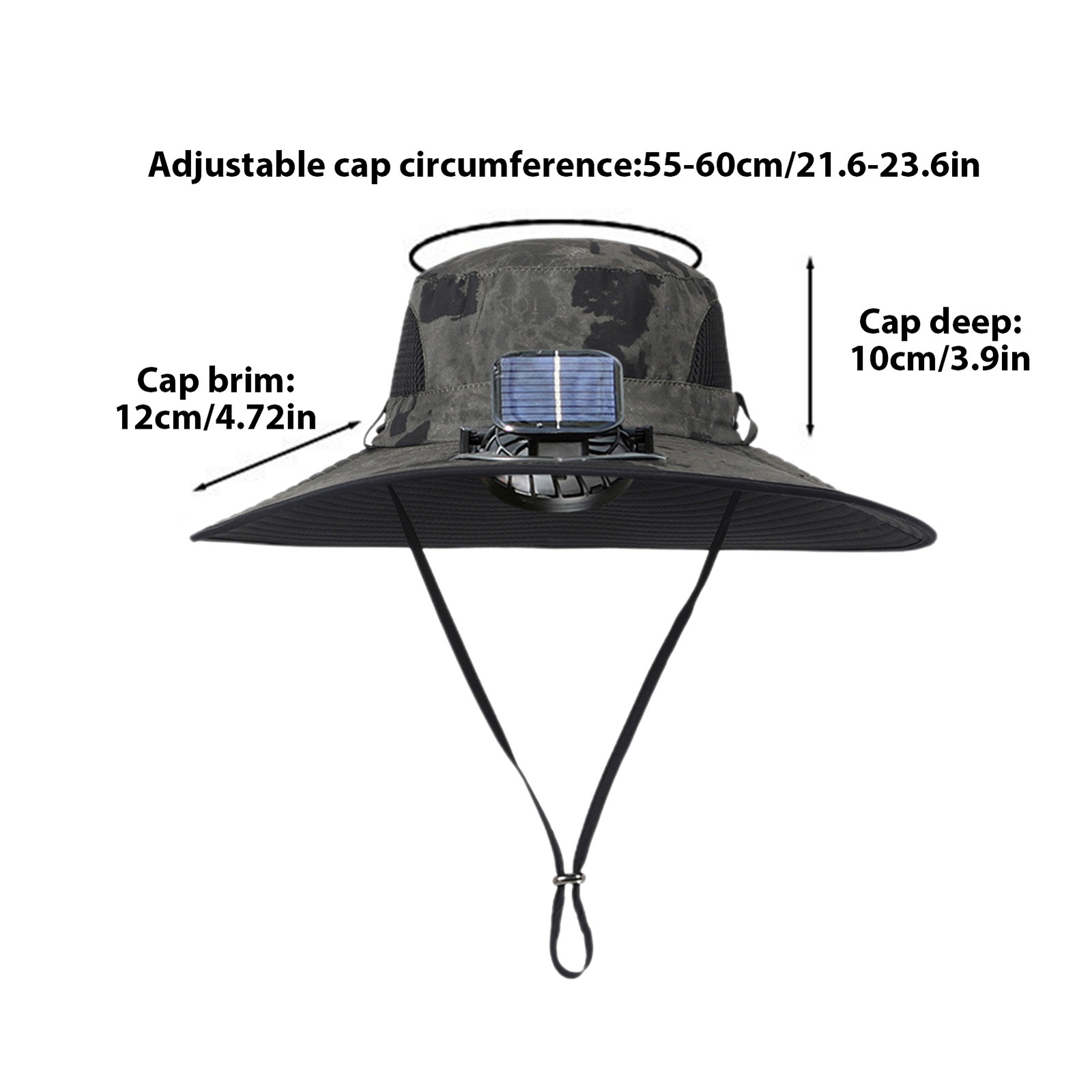 Wide Brim Sun Hat with Solar & USB Powered Fan UV Protection for Camping Fishing Product Description Bullet Points: Enhanced Performance: Equipped with a lightweight fan hat that adopts an advanced solar charging system, this innovative accessory ensures a strong wind for a cool outdoor experience, thanks to a solar panel area increased by 4.5 times. Sun-Powered Headgear: With advanced solar charging technology, this hat doesn't need sunlight to provide you with lasting relief. Its polycrystalline silicon panels and built-in battery ensure comfort in style. Powerful Wind Systeme: Keep comfortable during outdoor activities with our hat's built-in solar fans. Experience stronger and easily dispersing heat with the Powerful Wind System, feeling cool and refreshed no matter where you are. Unique Cooling: Experience unique cooling with this hat's built-in solar fans; enjoy the freedom to adjust wind speed for optimal comfort during any activity or weather change. Sun Protector: Bask in coolness with our solar fan hat. Its solar-powered fan provides shade, sun protection, and a refreshing breeze, making it perfect for any outdoor activity, be it mountain hiking, fishing, or more. Stay cool and protect yourself from the sun while fishing with our innovative fishing hat with solar fan. Featuring powerful wind system and innovative solar charging technology that enhances power generation efficiency. You can choose from varying wind forces that suit your needs. The hat also provides shade and sun protection, perfect for long days out on the water. Specifications: Product name: Solar fan hat Material: Polyester Color: green ink, Khaki ink, Dark gray ink, Camouflage (optional) Size: See details page Season: Summer Input voltage: 5V 2W Output voltage: 4V 1W Package contents: Fan, USB charging cable Applicable to: outdoor sports, fishing, mountaineering, camping, etc. Packing List: 1* Hat with Solar Fan Note: Due to different lighting and screen settings, the item color may be slightly different from the picture. Due to different manual measurements, please allow a 1-2cm difference in size. Payment 1.PayPal is a preferred Payment method. 2.You can make a Credit payment via Paypal.Paypal will let you use MasterCard,Visa to pay. 3.Payment should be completed within 3 days after auction closed, or unpaid dispute will be filed for an closing auction.An unpaid case will be filled after 4 days. Delivery details 1. We ship to many countries. 2. Delivery Time: Ship from China via Speedpak to US (takes 8-12 days) Ship from China via others shipping method to other countries (takes 15-60 days) 3. If you want to choose another address, please leave us a message on ebay.Please check your shipping address carefully before checkout,it can't be changed if order completed. Seriously promise:Refund or resend will be offered if item still not arrive in 7-10 business days. Just send us an email,we will give you a satisfied solution as soon as possible. Return policy 1.All item comes with Basic 3 Months Sellers Warranty, if item defective in 3 months,We will offer replacement without extra charger (including shipping fee) After we receive the defective item. If item Defective after 3 Month, Buyers can still send it back, We will contact suppliers or Manufactory for Warranty. Buyers Might Need pay the Shipping fee For resend the replaced item. 2.If item DOA(Dead of Arrival), Buyers can return it in 30 Days, we will replace it with new item after we receive DOA item. Please Contact us Before you sent the item back. 3.All item can be returned for exchange only. The buyer has responsibility for all return shipping including DOA or defective return. About Feedback When you receive the item and satisfied with the product, please leave positive feedback and 5 scores DSR. We will leave a 5 Scores DSR feedback for you. If, for any reason you are not satisfied with your purchase, please contact via Ebay Message and we will do our best to resolve it. Please don't leave neutral or negative feedback without any communition with .