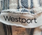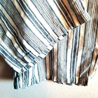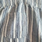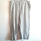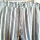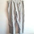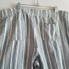 XL Wide Leg Linen/Rayon Capri Pant Pockets Elastic Tie Waist Blue Cream Stripes Back has elastic, front has tie front and no elastic No stains no holes no pilling. Please refer to measurements below for best fit. two side pockets, two back pockets Flat Measurements Approximately Rise: 14" Length, waist to hem 40.5" Inseam: 29" Waist, before stretch: 20", front only Across Hip, front only, 7" below waist: 23" Across Leg Opening: 12.5"