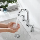 Brass structure 3 hole bathroom faucet chrome ensures durability, low arc swivel spout with NEOPERL No splash water aerator keeps your countertop clean, start saving water with our wide spread bathroom sink faucet. Shiny chrome sink faucet bathroom surface treatment process, avoid leaving fingerprints after each daily use, high end double handle bathroom faucets for sink. Easy clean the faucet for bathroom sink. DIY installation with this bathroom faucets, fits 4-16 inch center, make sure the countertop mounting hole size is 1.1-1.4 inch and the max thickness is 1.5 inch. 2 Handle 8 inch widespread bathroom sink faucet is easy control water flow and temperature, drip-free brass cartridge passed 500000 leak testing, the 3 hole bathroom faucet is more durable than others. Everything you need for installation is in 3 hole bathroom faucets box, such as the water faucet, quick connection hose, 24 inch supply lines, pop up drain and installation manual.