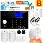 Tuyasmart Wifi GSM Home Alarm 1. Support Tuya APP, Wifi + GSM Alarm.. 2. System support 2 years warranty ! 3. If you want to get more detail information, please tell me your email, and I will send the "PDF Manual" to your email in 10 hours. 11 languages to switch This alarm system support 11 language to switch : English / Russian / Spanish / German / Polish / Chinese / Italian / French / Portuguese / Greek / Romanian. Why choose our product?? We are a professional security company, we cooperate with big factory. It is more stable and quality products.We don't sell inferior products. Product Comparison 1. New system support wireless detector and wired detector, but old system not support wired detector. Wired detectors can avoid wireless interference, suitable for engineering projects. 2. New system support alexa voice control. Compatilble with alexa, Google home, Please see the video, you can see we can control the alarm host with an alexa device. 3. One-key SOS helping alarm. Designed to protect the eldrely men and children. 4. High-end wireless accessories. About the remote controller. Combine the switch designing, make sure no false alarm! You can power off the remote controller, the battery life will extended by 5 times. In the below photo, you can see the cat press the remote control himself and trigger false alarm. About the new designed infrared motion detector, it support connect USB power plug. Never worry about low battery. Your house will be in protecting all the time. Product Description 1. WIFI / GSM / intranet alarm system: APP push,SMS,Voice monitoring,intranet center etc. Support different alarm channels. Enjoy the intelligent life. 2. English / Russian / Spanish / German / Polish / Chinese / Italian / French / Portuguese / Greek / Romanian switchable: Support multi-language menu display, voice operation prompts and alarm SMS settings. GSM network automatic proofreading,to ensure accurate clock,support time zone settings, Convenient for multi-area application. 3. Remotely monitoring alarm: When accident invasion,the phone remotely grasp the situation, high decibel live alarm through the host timely dial,send SMS notification, APP message push. 4. Configure RFID cards: Configure 2 RFID cards, Support 100 learning/storage location for remote controller, RFID cards and wireless detector. 5. Multi-zone location settings: Such as gate,hall,SOS,bedroom,Window,balcony,perimeter,smoke,gas, Carbon monoxide,water leaking etc zone name settings. 6. Five types defense zones setting: Ordinary zone,stay arm,24-hour emergency zone,closed zone, doorbell zone,Meet a variety of needs. 7. Timely notification: When External power failure,built-in battery low power,APP push and SMS notification. When External power success,APP push. When Tamper alarm,SMS notification. 9. Five groups preset alarm phone numbers: SMS on/off and dial on/off can be set respectively. 10. Timing arm and disarm: Set the arm and disarm in advance,so that life is safe every day. 11. Delay function: User can set arm delay and alarm delay according to own needs. 12. Add camera: Work with camera,when Accidental invasion, You can remotely monitor the situation immediately, speak and scare away thieves. Real-time protect your home If door is opened illegally, detector will trigger system alarm. System support two-way intercom, you can scare off the thief in the phone. Alarm Message You will receive app alarm message + alarm call + alarm SMS. Specification Power Supply: Micro USB 110/220VAC to 5V, 1000mA Backup Battery: 3.7V, 500mAh Rechargeable Lithium Battery Consumption: <55mA@normal Radio Frequency: 433Mhz GSM: 850/900/1800/1900MHz Wi-Fi: IEEE802.11b/g/n Operation Temperature: 0~55℃ Product Certification Add more detectors. Please click the below photo and buy the detectors. Product including Due to aviation restrictions, all the detectors have no battery include. You can buy battery in your city, it is easy to buy. Accessories Introduction: A: 1 door detector + 1 motion detector. B: 2 door detector + 2 motion detector + 1 smoke detector. C: 3 door detector + 3 motion detector + 1 doorbell button. D: 6 door detector + 4 motion detector. E: 1 door detector + 1 motion detector + 1 Camera + 32GB card. F: 6 door detector + 1 motion detector. G: 2 wired door detector + 1 wired motion detector. H: only the alarm host. I: 5 door detector + 2 motion detector. J: 4 door detector + 1 motion detector + 1 water detector. K: 1 door detector + 1 motion detector (ustomized). L: 12 door detector + 6 motion detector. M: 4 door detector + 1 motion detector + 1 wireless solar siren. N: 1 door detector + 1 motion detector + 1 carbon monoxide detector. O: 10 door detector + 1 motion detector. P: 8 door detector + 2 motion detector + 1 wireless keyboard. Q: 8 door detector + 2 motion detector. To my dear customers Thank you very much for your recognition of our products and support for the store. If you are satisfied with our products or our services, please give us a precious five-star. Thank you very much! If you are not satisfied with our products, or you can't find your package, please contact us at the first time, we will be responsible for you and your products. Thanks again! Have a beautiful day! ^-^