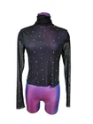 Wild Fable Black Rhinestone Embellished Mesh Top Long Sleeve Size Small G20 In excellent condition Wild Fable Black Rhinestone Embellished Mesh Top Long Sleeve Size Small Women's. Features sexy date night worthy sheer rhinestone embellished mesh top, turtleneck, glam gem stones, long fitted sleeve, slightly cropped, form fitting, stretch, raw hems, whimsigoth, Y2K, rave, festival. Measurements laying flat chest 15" length 19" arm inseam 21.5" Fabric mesh This is a pre-owned item that may show signs of wear. In excellent condition, no flaws.