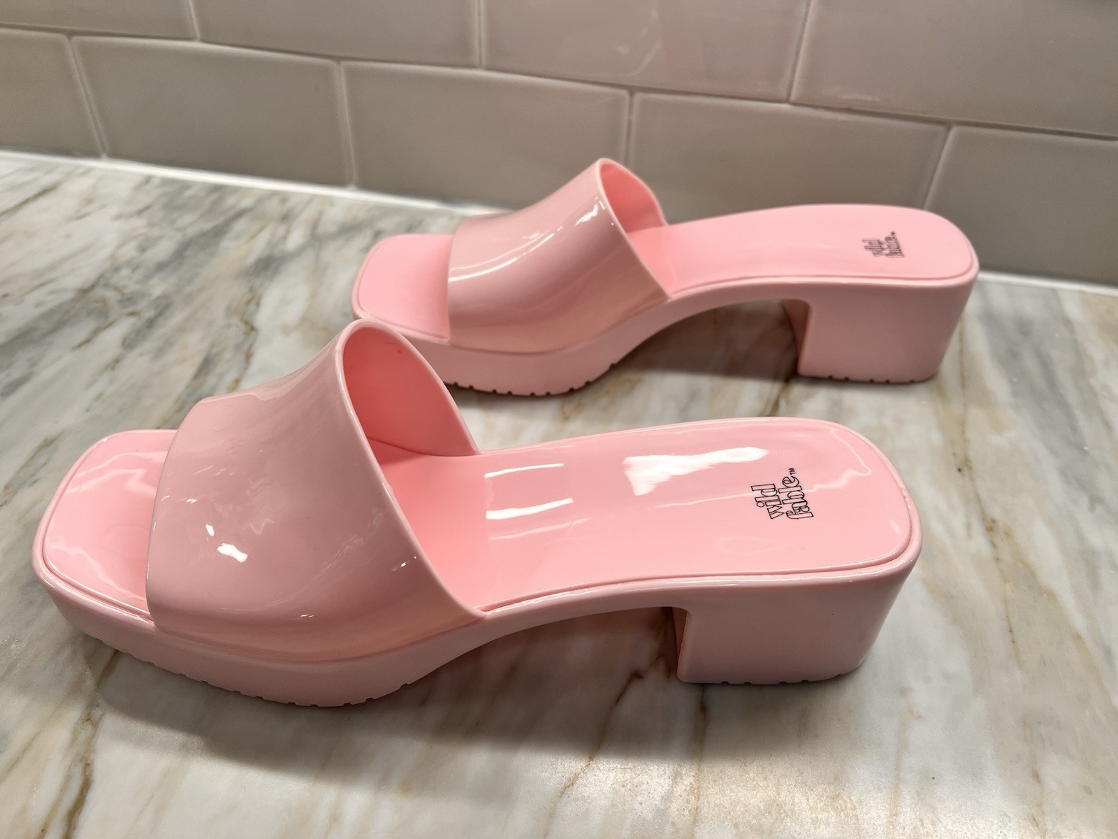 Step into sunny vibes with these Wild Fable shiny pink mule heels, a perfect addition to your spring and summer wardrobe. Boasting a playful round toe design and a sturdy block heel measuring approximately 2 inches, these shoes offer both comfort and style. They're versatile enough for casual outings or cocktail parties, making them a must-have for any fashion-forward individual. The size 9 heels feature a bright pink upper made from 100% plastic and a soft lining crafted from 100% man-made materials, ensuring a comfortable fit for all-day wear. With a medium shoe width, these mules are designed to fit beautifully and bring a pop of color to any ensemble.