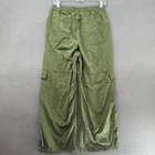 Women's olive green cargo pants by Wild Fable. Elastic waistband ensures comfort and a flexible fit, while wide legs offer a relaxed silhouette. Two large cargo pockets on each leg add practical storage and a utilitarian aesthetic. Perfect for casual outings or a relaxed weekend look. Measurements: • Waist: 28 in • Inseam: 30 in • Rise: 12 in • Leg Opening: 10 in Style: Cargo Department: Women Material: Cotton Leg Style: Wide-Leg Fabric Type: Canvas Type: Pants Features: Elastic Waist, Pockets, Lightweight Closure: Pull On Pattern: Solid Accents: Zipper Theme: Hipster Occasion: Casual Inseam: 31 in Waist Size: 30 in Keywords: Wild Fable, cargo pants, utility pants, olive green, wide leg, elastic waist, casual, streetwear, relaxed fit, boho, travel, everyday Follow us for great deals! -- New items listed daily! -- We ship daily!