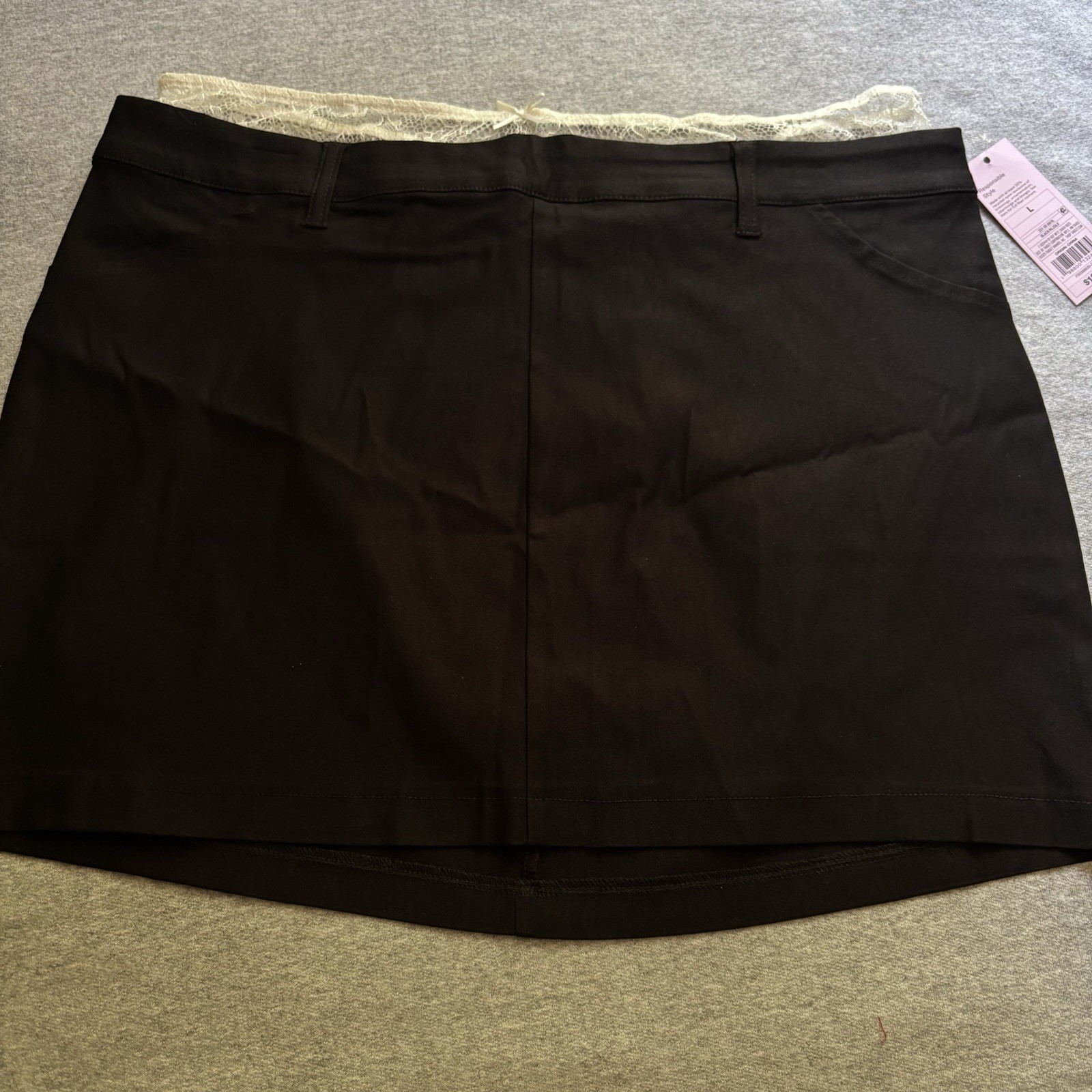 The Wild Fable Women's Size Large High Rise Peek A Boo Lace Mini Skirt in Black is a stylish and versatile piece perfect for various occasions like travel, parties, or casual wear. Made from a comfortable blend of nylon, spandex, and rayon, this pull-on skirt features a high rise and a short length, making it a trendy choice for the modern woman. The lace detail adds a touch of elegance to the solid black color, making it a must-have in any wardrobe.