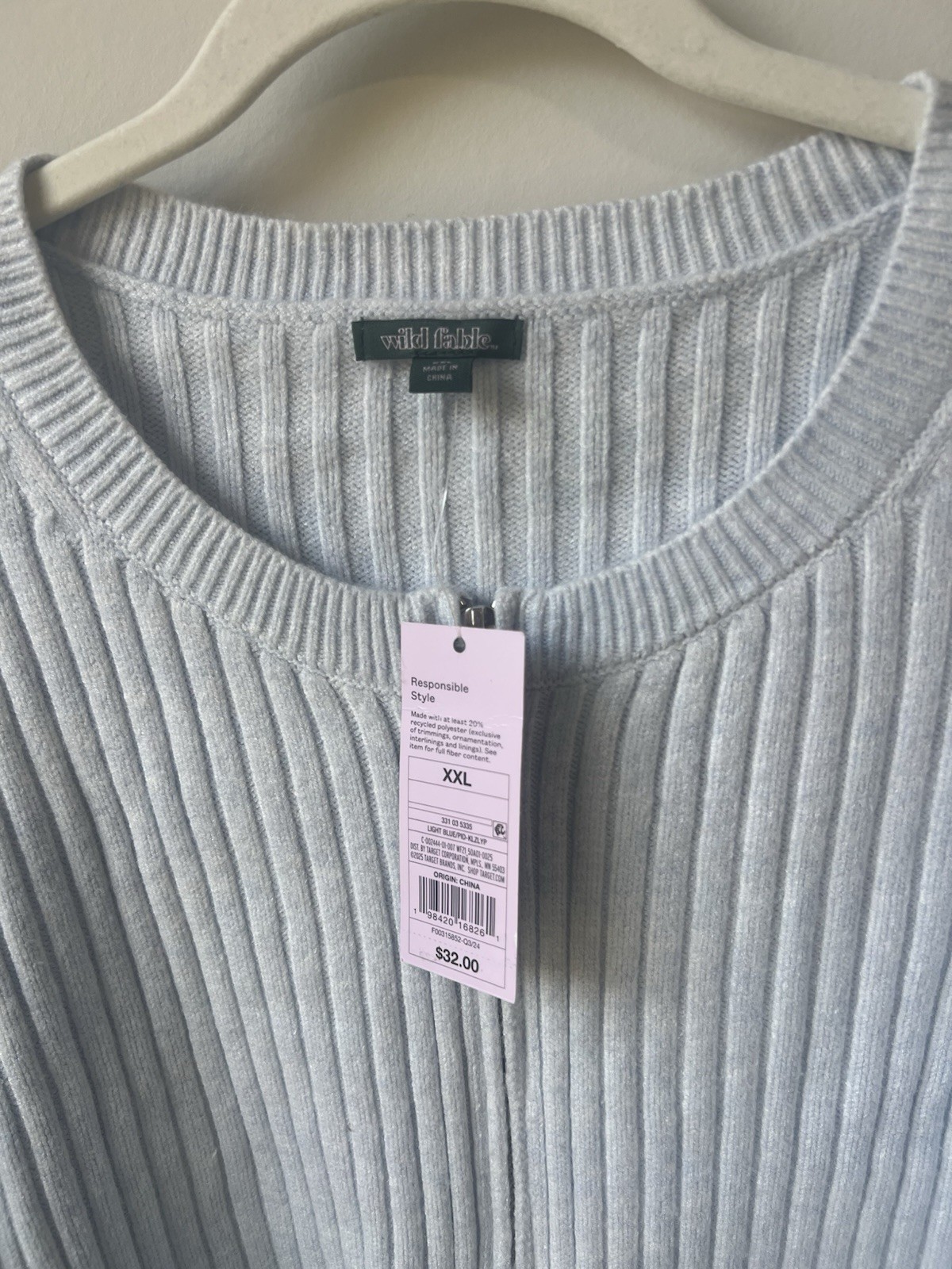 The Wild Fable Women's Light Blue Zip-Front Cardigan Cropped Sweater in size XXL is a stylish and versatile piece perfect for various occasions such as travel, parties, or casual wear. Made from thick ribbed knit fabric with a scoop neck and chrome zipper accents, this sweater features a drop shoulder design and a solid light blue color. The 18" length from shoulder to hem and 7" inseam underarm to hemline give it a modern and on-trend look, while the heavyweight material ensures warmth during the summer, fall, and spring seasons. Easy to care for with machine washable instructions, this cardigan is a must-have addition to any woman's wardrobe.