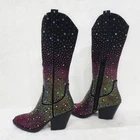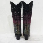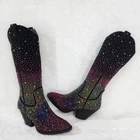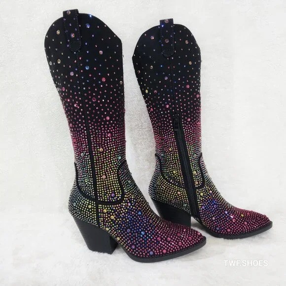 Stunning Country Western Knee Boots Super Sparkle Multi Rhinestone Boots Western Cut 3" (approx.) Heels Half Side Zipper For Easy Usage Top Finger Pulls To Help Slip Them on. Top Opening Approx. 14" on Size 7 and will go up as sizes do. Brilliant Coloring Definite Head Turners Brand New In Box TWF.SHOES Email us with any questions or Concerns BEFORE Placing Your Order. Last but not least, we want all of our customers HAPPY and to LOVE your new shoes! So if you have a problem, please let us know. YOU ARE IMPORTANT and we will do our best to fix what is wrong. THANK YOU FOR SHOPPING WITH TWF.SHOES