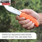 Wildguide 4-Piece Hunting Knife Set & Field Dressing Kit | Featuring Razor-Sharp Caping Knife, Gut-Hook Skinning Knife, Bone Saw, in a Camo Nylon Belt Sheath | Butcher Knife Set for Deer FIXED BLADE GUT HOOK SKINNER WITH SHEATH - Deep bellied skinner removes hide quickly and gut-hook opens game like a zipper without piercing internal organs; comes complete with a camo nylon belt sheath. RAZOR SHARP – Perfectly balanced full-tang 420J2 stainless steel blade is precisely heat treated, taper ground, then hand finished to a shaving sharp edge for superior edge retention and performance. RUBBERIZED NONSLIP TPR HANDLE – Ergonomically shaped, high visibility blaze-orange TPR handle reduces hand fatigue after long periods of use and ensures a safe and comfortable grip, even in the slickest conditions. QUALITY CAMO BELT SHEATH – Keeps the WildSkin clean, dry, and always ready. SERVICE FOR LIFE – Outdoor Edge produces quality tools that are built to last. If you have a problem with your Outdoor Edge knife contact us. We address all replacement and service requests. Product Description OUTDOOR EDGE WILD SERIES Outdoor Edge WILD Series Premium Fixed Hunting Knives Introducing the WILD Series of Fixed Blade Hunting Knives & Tools for in the Field Processing. All of the Wild Series sets of Knives & Tools Provides Outdoorsman all the right tools needed to prep & process from field to table. Shaving Sharp Edges All of the Wild Series hunting knife sets feature hand-finished edges for a shaving sharp experience. Rubberized TPR Handles Each of the Wild Series Products Feature Premium Non-Slip Rubberized TPR Handles for a superior in the field experience. Durable 420J2 Stainless Steel The Wild Series Features Heat Treated Blades for Superior Edge Retention & Cutting Performance. Easy to Transport All of the WILD Series products include either a convenient blow molded carry cases or durable nylon sheaths making transport and storage a breeze. WILD SERIES FEATURE CHART Add to Cart Add to Cart Add to Cart Add to Cart Add to Cart Add to Cart Add to Cart Customer Reviews 4.7 out of 5 stars 1,494 4.7 out of 5 stars 1,494 4.7 out of 5 stars 1,494 4.7 out of 5 stars 1,494 4.6 out of 5 stars 180 4.7 out of 5 stars 3,373 4.7 out of 5 stars 3,373 Price $37.90 $ 37 . 90 $21.95 $ 21 . 95 $34.95 $ 34 . 95 $16.95 $ 16 . 95 $11.95 $ 11 . 95 $34.90 $ 34 . 90 $48.55 $ 48 . 55 Rubberized TPR Handles Yes Yes Yes Yes Yes Yes Yes 420J2 Stainless Steel Yes Yes Yes Yes Yes Yes Yes Heat Treated Blades Yes Yes Yes Yes Yes Yes Yes Overall Weight 11.4 oz 8.3 oz 9.6oz 4.5 oz 2.6 oz 1.2 lbs 2.4 lbs Carry Case/Nylon Sheath ✔ ✔ ✔ ✔ ✔ ✔ ✔ Outdoor Edge Knives & Tools Lifestyle The video showcases the product in use. The video guides you through product setup. The video compares multiple products. The video shows the product being unpacked. Shipping Fast shipping is very important for us. Our standard US shipping service is FREE. Your order will be shipped within 2-3 business days upon full payment received. Your order will be delivered within 2-3 business days after the handling time. We only ship to the confirmed PayPal address. We reserve the right to cancel any order for any reason at any time. We are not responsible for undeliverable addresses. Returns and payment We offer a 30 days return policy from checkout winning date. We allow only PayPal as payment method FeedBack Your feedback very important to us, after you get your package and you are satisfied with our service please leave us positive feedback If you have any problem with your order / any questions please before leave any type of feedback For any questions, using eBay contact system Please visit our eBay store to check out other items for sale! Thank you for shopping at our store.