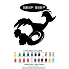 Wile E Coyote & RoadRunner - Vinyl Decal Stickers Variations: Designs: #1, #2, #3, #4, #5, #6, #7, #8 and #9 Height: 2", 3", 4", 5", 7", 9" and 11" Colors: 22 (see the picture) default - Black How to order other colors: Place your order and leave us a note with your color preference. (Without your note a sticker will be mailed in the default color) Description: High quality long life vinyl decal with clear application tape for easy installation. Measurement is of the decal at its widest point. This sign grade vinyl decal will stick directly to doors, windows, bumpers and walls. Decal has no background, the white area in the photo is cut out and will show the background where it is applied. Below are some specs of the vinyl: Self adhesive Will not harm your paint or natural finish Can be applied and reapplied for desired look Waterproof and stain resistant Indoor life of over 8 years Outdoor life of over 5 years UV protected Can also be used with a heat gun or household blow drier for shaping Very flexible and stretchable Super thin (0.2mm) to fit in most tight spots or corners (3M 94 primer is recommended for curves & corners) Can be used for other projects other than automotive Super easy to use Low cost compared to a paint job! Instructions: Rub the sticker to be sure the transfer tape is properly attached to the sticker. Clean and dry the chosen area. Stickers will stick best to clean flat surfaces. Remove the wax backing slowly making sure the sticker stays attached to the transparent transfer tape Carefully place the sticker to the wanted area. Rub the sticker from one side to the other, removing any air bubbles. Use an object like a card to make sure the entire sticker is fully attached to the surface. Slowly remove the transfer tape, making sure no part of the sticker remains on the transfer tape. Check for air bubbles. In most cases air bubbles can be worked to the edge of the sticker. Payment/Shipping/Returns/Refunds: Most orders are shipped within 24 hours, Monday-Saturday shipping! Standard shipping in the US (no tracking is provided) USPS First Class tracking # provided, and Priority shipping is offered for an additional cost. Make sure your address is correct, if a decal is returned to us for an undeliverable address, buyer will pay shipping to resend the decal! You have 7 days to contact us and 30 days to return it from the date it was received. All returned items have specific reason for the return, and your eBay ID. We will refund YOUR FULL WINNING BID AMOUNT, upon receipt of the item in its original condition and packaging with all components and accessories included, AFTER BOTH Buyer and Seller cancel the transaction from eBay. Please note that delays may occur due to post office issues, customs & holidays. Weekends are not business days. We are not responsible for any address information that is insufficient or incorrect.