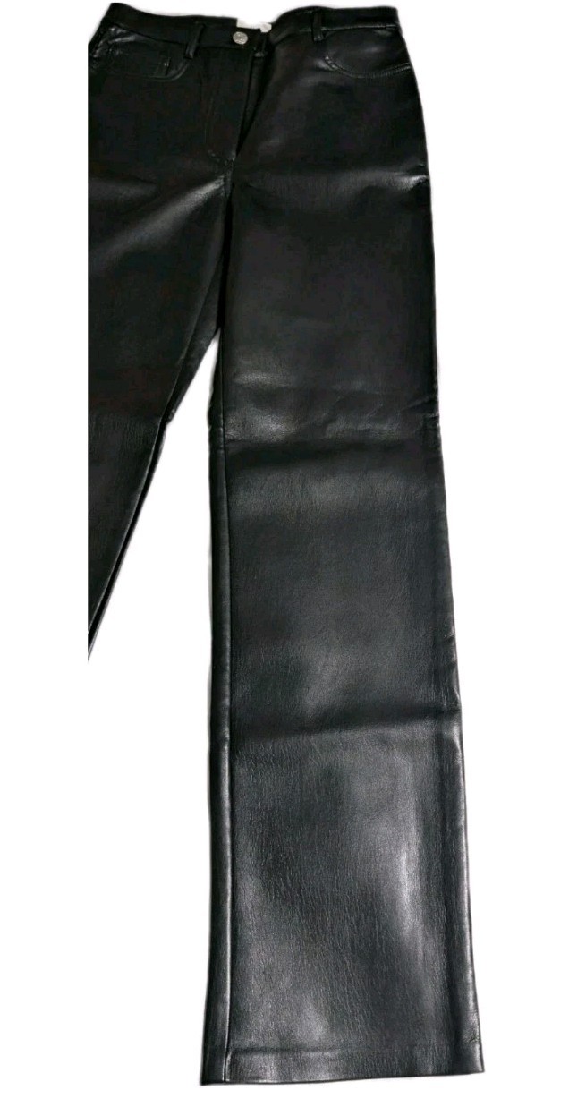 The Wilfred Aritzia Vegan Leather Pants in Black are a stylish and versatile option for women looking for a chic and cruelty-free wardrobe staple. These straight-leg pants feature a zip closure and a solid pattern, making them easy to mix and match with various tops for a classic look. The ankle length and faux leather material add a modern touch to any outfit, while the size 4 and 31-inch inseam ensure a comfortable and flattering fit for a wide range of body types. Ideal for those who appreciate both fashion and ethical choices in their clothing.