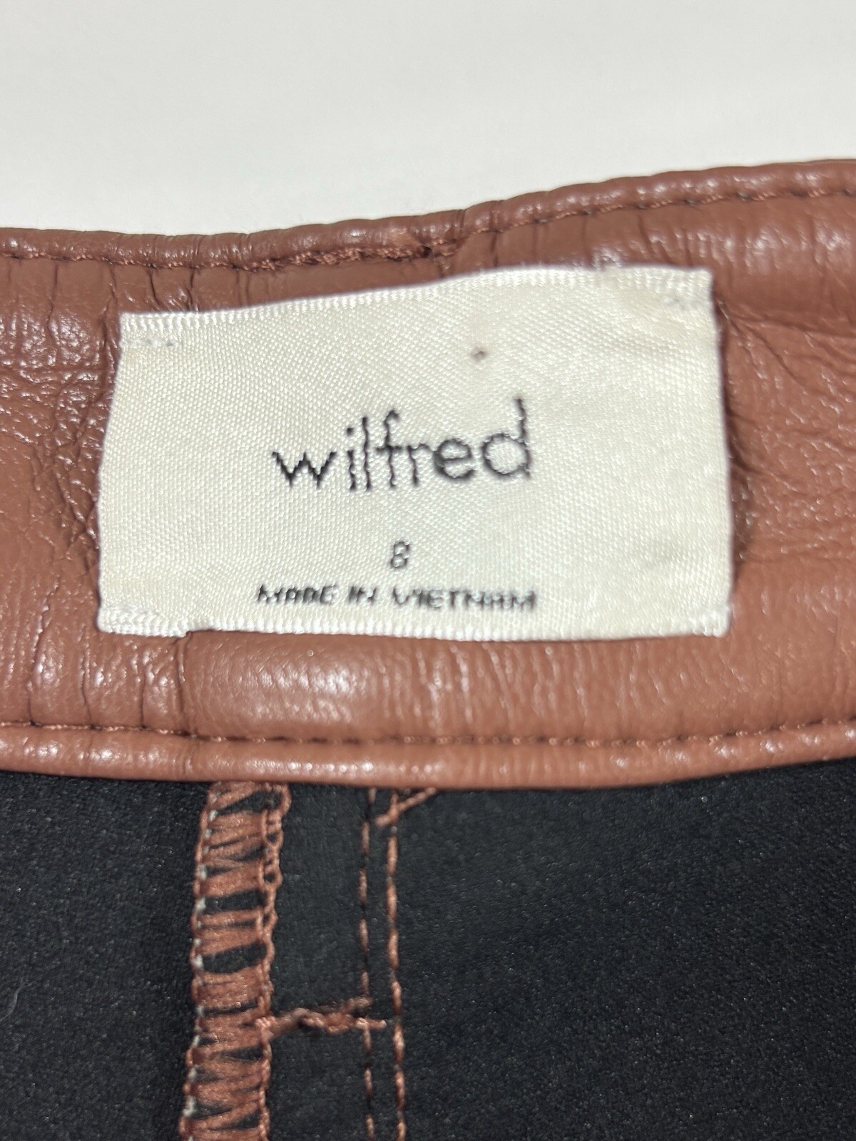 Wilfred Melina Faux Leather Pants Brown 8 5 Pocket Style 16620 Fabric Content - Face: 100% polyurethane, Back: 100% polyester Care Instructions - Machine wash, flat dry See photos for condition - excellent condition, no flaws Size 8 - See photos for measurements