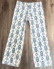 Elevate your wardrobe with these stunning Willi Smith women's pants in a beautiful geometric print of blue and beige. These trousers feature a relaxed fit and a flattering wide-leg design, making them perfect for any occasion, from workwear to outdoor adventures. Crafted from a high-quality blend of viscose and linen, these pants are both comfortable and durable. They come in size 8 with a 34-inch waist size and an inseam of 32 inches. The pants have a flat front, zip and button closure, and are easy to care for with hand washing. With their beachy, hippie, and bohemian vibe, these pants are sure to become a staple in your summer and spring wardrobe. ***Some stretch to the material but not on the waist line*** Waist-34" Hips-42" Inseam-32" Condition Preowned Good condition-***faint staining on one leg (hard to see)*** See pictures for details and measurements Please contact us with any questions or concerns. Thanks!