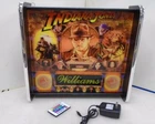 You are Bidding on a Williams Indiana Jones Pinball Head LED Display light box This sign is hand crafted in the USA It is a scaled down pinball backbox with Vinyl Graphics applied to plywood frame and Black melamine end caps with actual scaled down head decals The Backglass in it is brand new and is made of Lexan Comes with hooks to hang it on the wall Powered by LED strip lights with a 24 button remote control to run them , they can change colors and flash and do all kinds of cool stuff Overall dimensions are 17" wide 16" Tall 5 " deep Comes with the 12 volt power supply and remote I Will combine Shipping on Multiple auctions We ship Internationally Powered by SixBit's eCommerce Solution